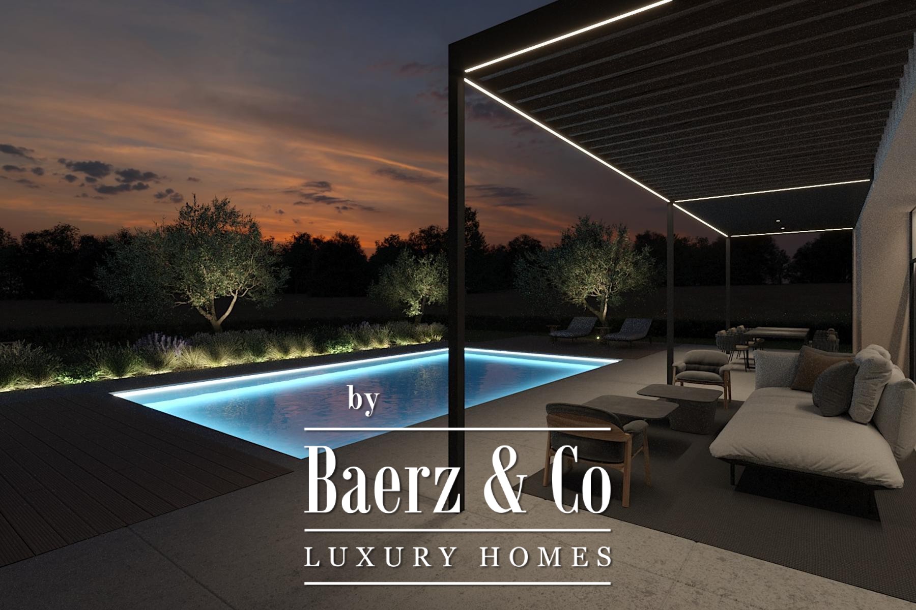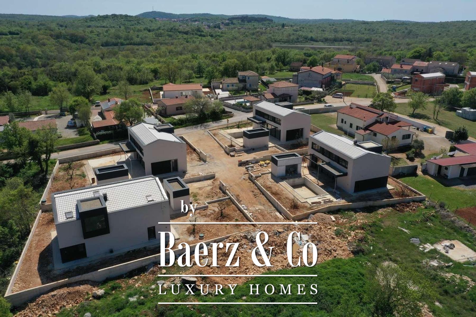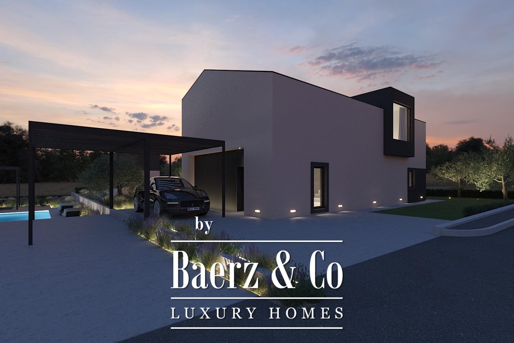 These exclusive villas are located in a small town on the west coast of Istria near the beautiful cities of Poreč and Rovinj. East-south-west orientations. Villa with a net usable area of 197 m2 (first floor with floor plan area of 97 m2, second floor with floor plan area of 99 m2, ), on a plot of 742 m2, divided into two floors. First floor: