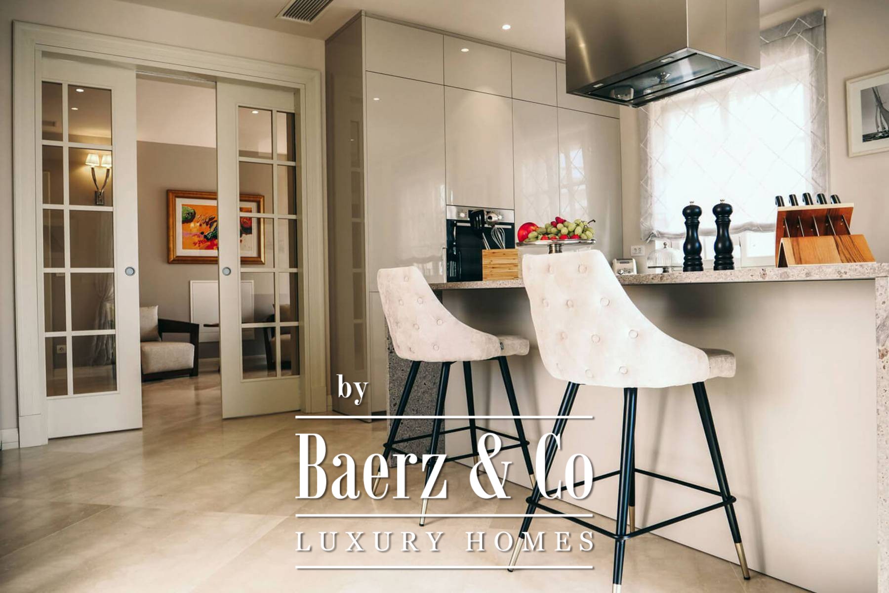 harmony of colors runs through all the rooms. Three spacious bedrooms, each with its own bathroom, equipped with the highest quality Italian ceramics and marble, access to a terrace paved with real stone, a large spacious living room and a modern kitchen.