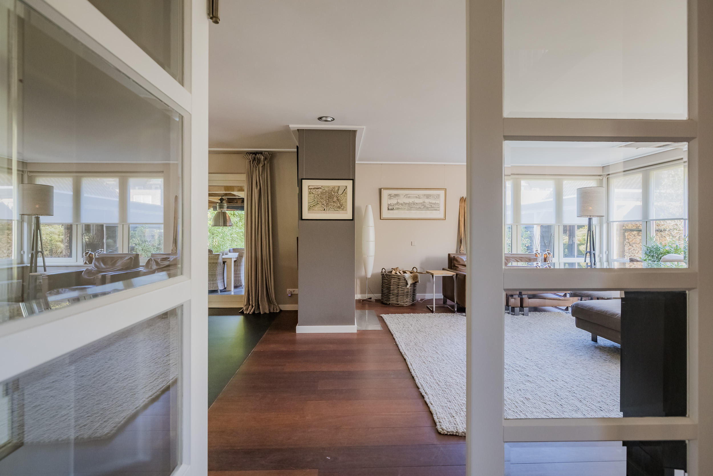 Rondom de villa ligt een fraai aangelegde tuin met volop privacy, een grote rozenboog, een tuinhuis met overkapping én een prachtige eikenhouten veranda. Hier geniet je het hele jaar door van het buitenleven; een fraaie uitbreiding van de woonkamer.