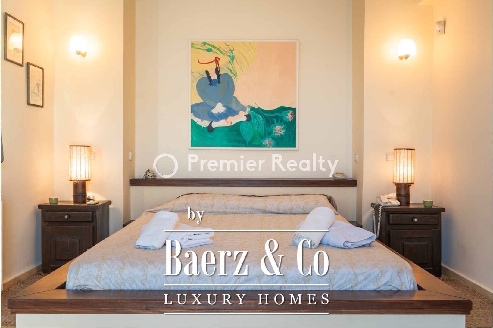 • Ground Level – A spacious living room with fireplace, a fully equipped kitchen, and guest WC open onto a large balcony with captivating sea views, providing seamless access to the pool and gardens.