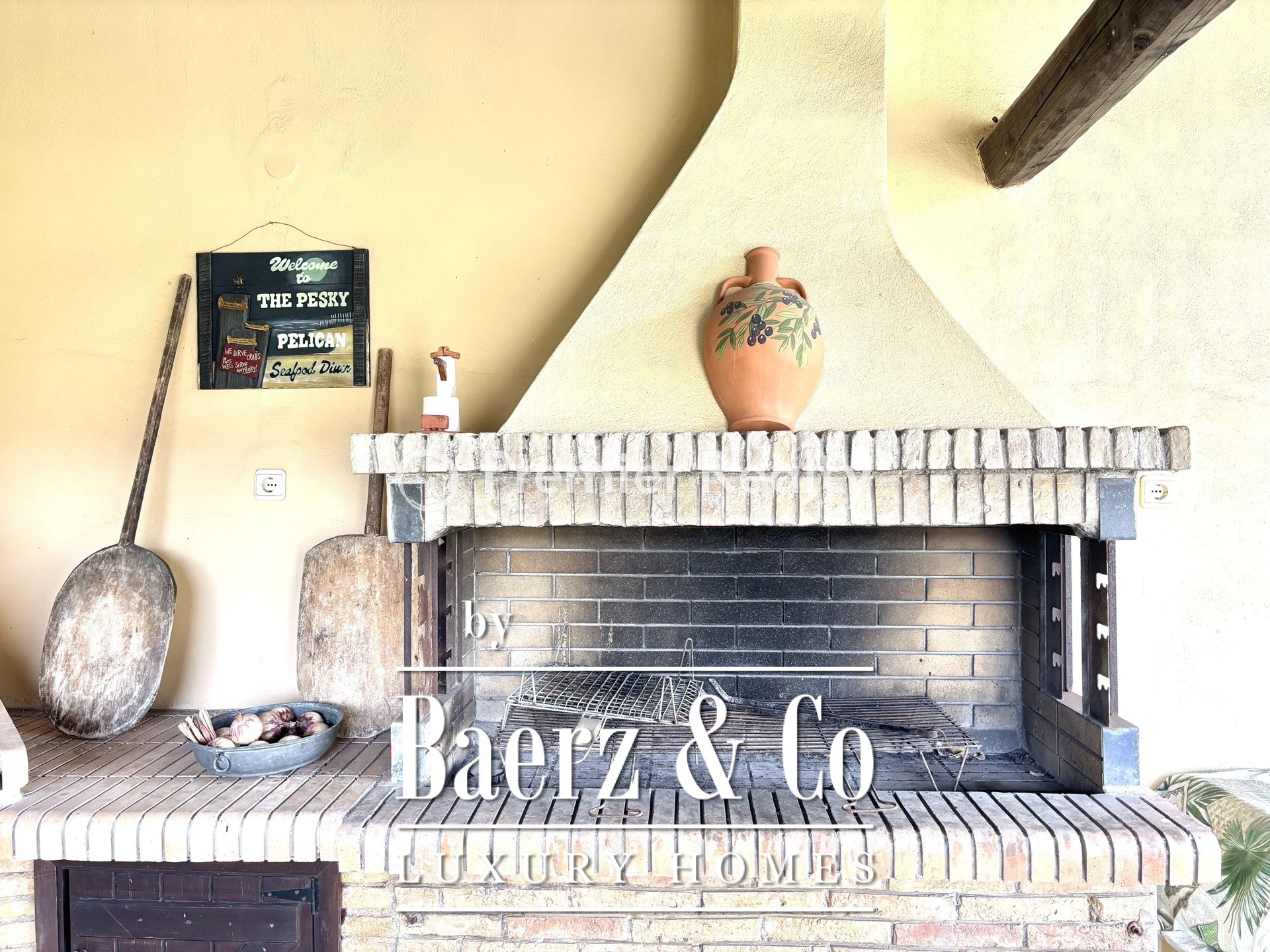 A 25 sq.m. infinity pool is the focal point of the outdoor spaces, set against panoramic sea views. Manicured gardens with automatic irrigation, shaded terraces, and balconies create multiple settings for relaxation. A dedicated built-in BBQ area with wood oven and al fresco dining space invites gatherings with family and friends, embodying the Mediterranean lifestyle. With the beach just 200 m away, the residence seamlessly combines privacy with coastal ease.