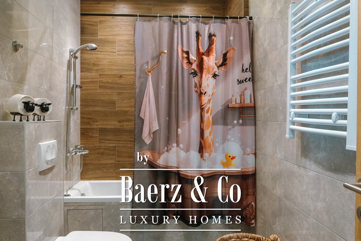 The interior has an author's design with a set of several lighting scenarios. Italian ceramic tiles of the highest quality were used in the decoration, climate systems and ventilation, heated floors, and fireplaces were installed.
