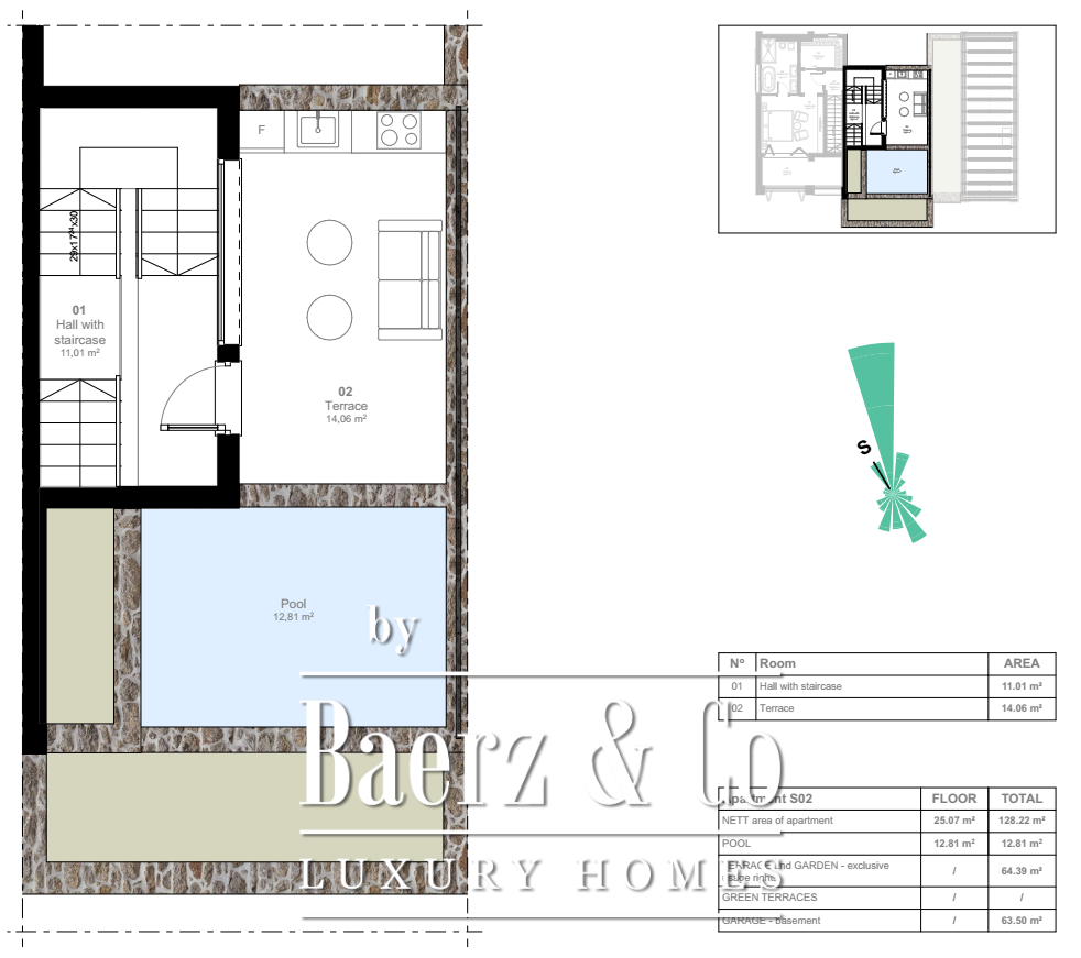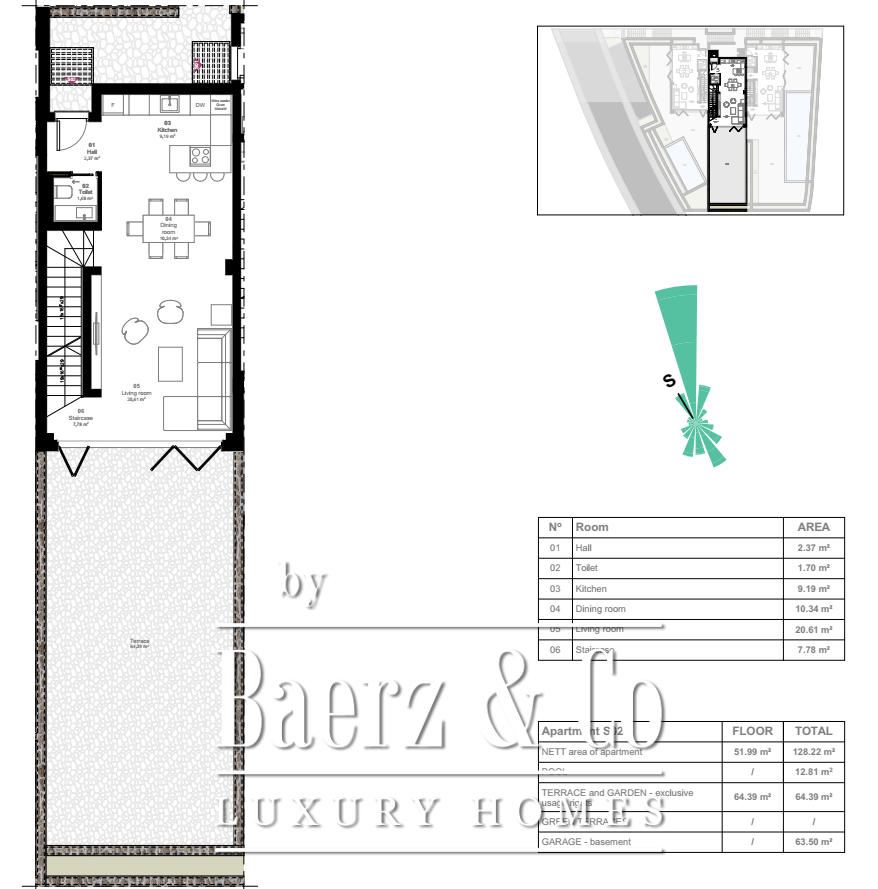 ‍The townhouse has 4 levels. It has a pool that is on the top of the house. The house has a garage spot. It is connected by an asphalt road to the main road.