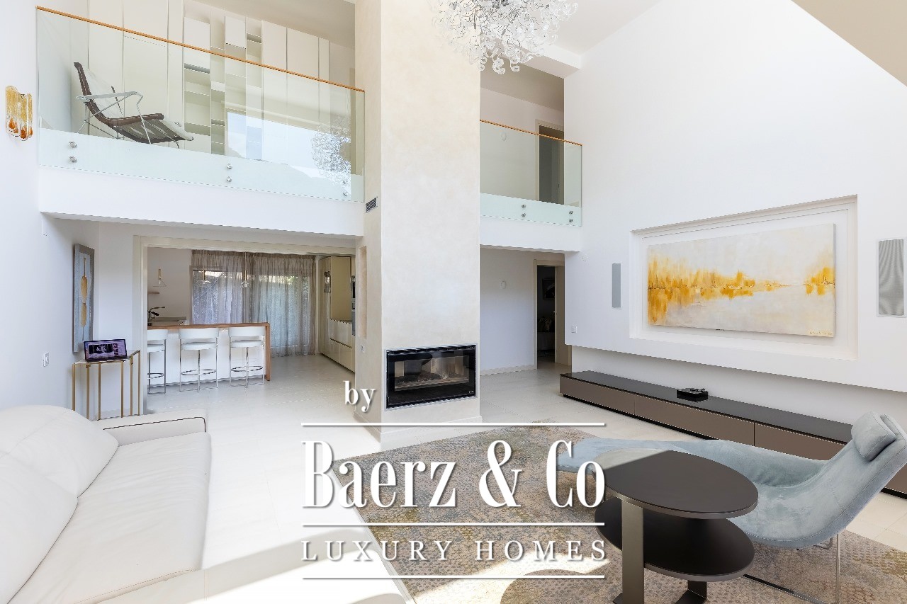 4 bedrooms and two separate apartments can easily accommodate all family members, guests, and helpers. The master bedroom, occupying the entire attic floor, with a spacious walk-in closet, bathroom, two terraces, internal and external fireplaces, will leave no one indifferent. And the light-filled and airy living room with double-height ceilings will become a favorite gathering place for the family.