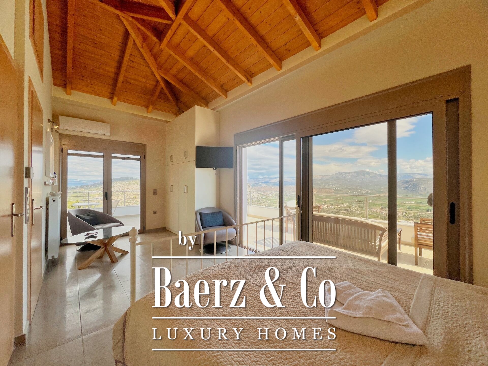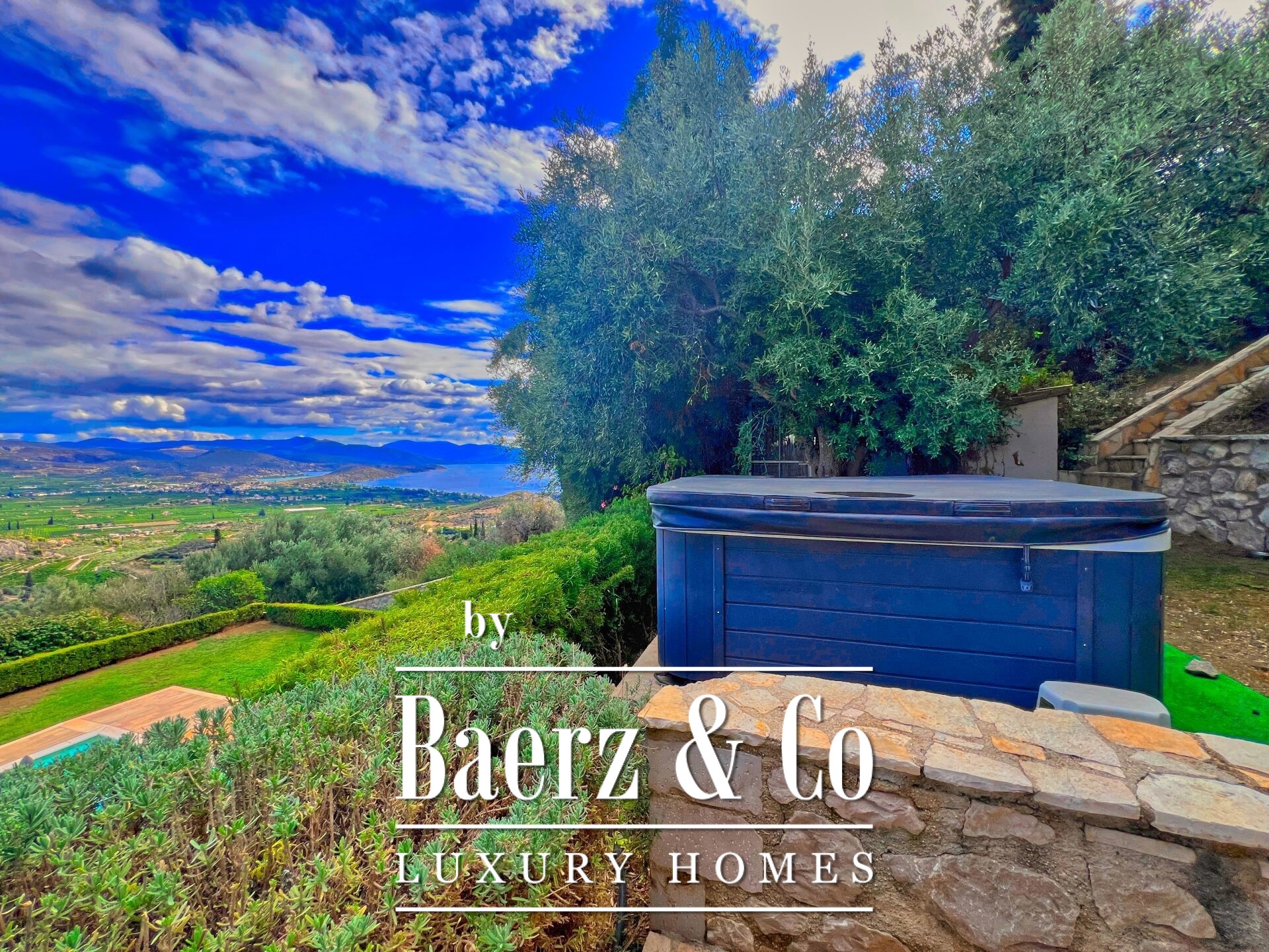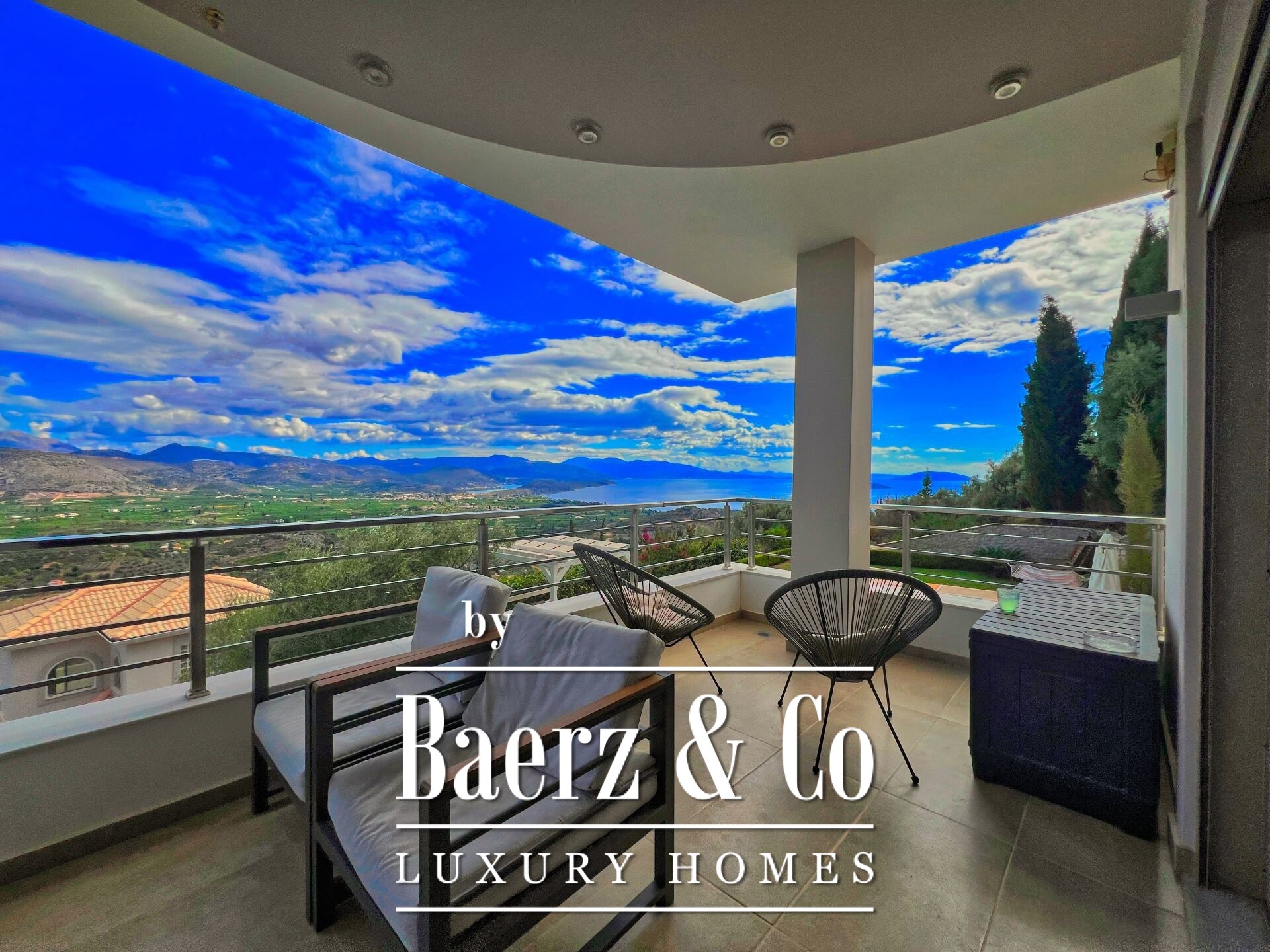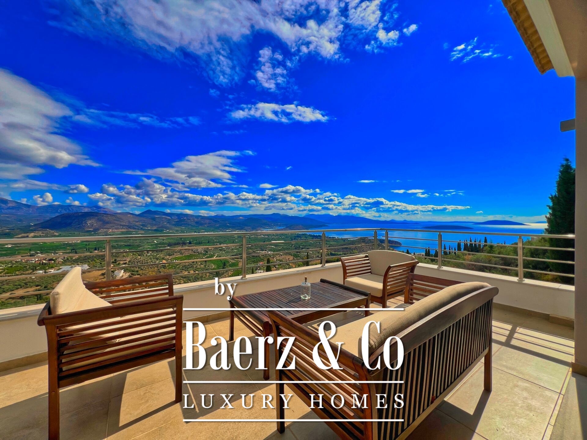 Behind the town of Tolo, a luxurious three-level residence, with a total area of ​​165 sq m, is available for sale. The property is located on one of the highest points in the area, offering panoramic and unobstructed views of the surrounding mountains, the plain, the sea and visibility to the island of Spetses from every point of the house.