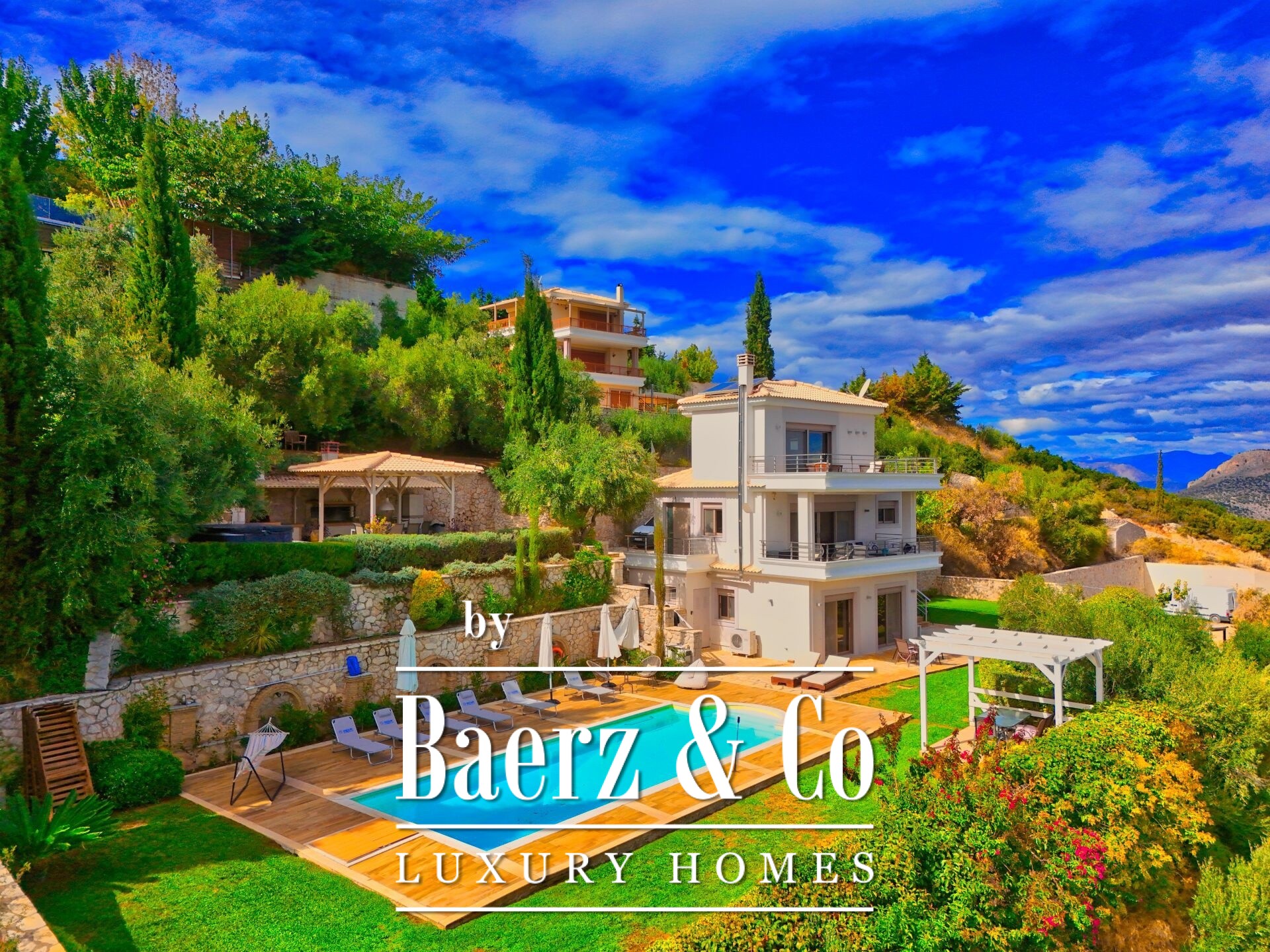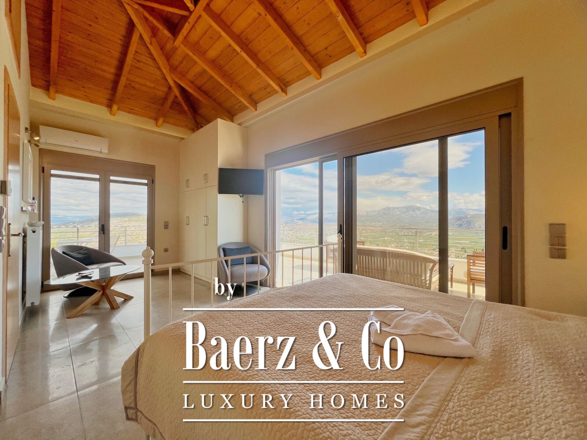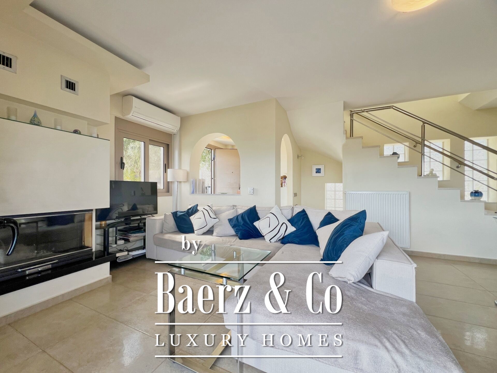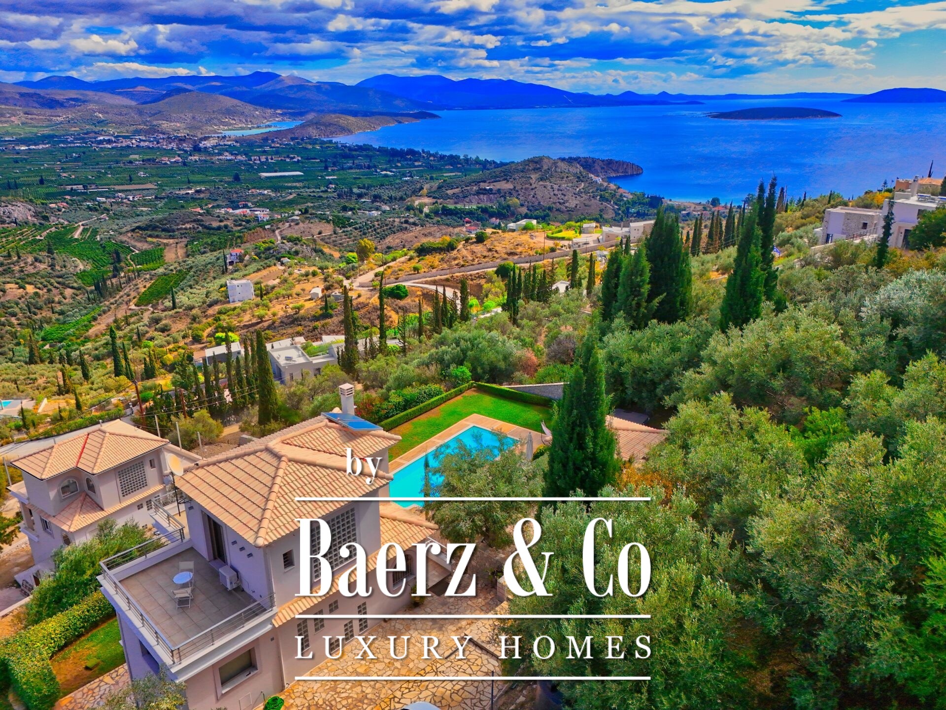 Behind the town of Tolo, a luxurious three-level residence, with a total area of ​​165 sq m, is available for sale. The property is located on one of the highest points in the area, offering panoramic and unobstructed views of the surrounding mountains, the plain, the sea and visibility to the island of Spetses from every point of the house.