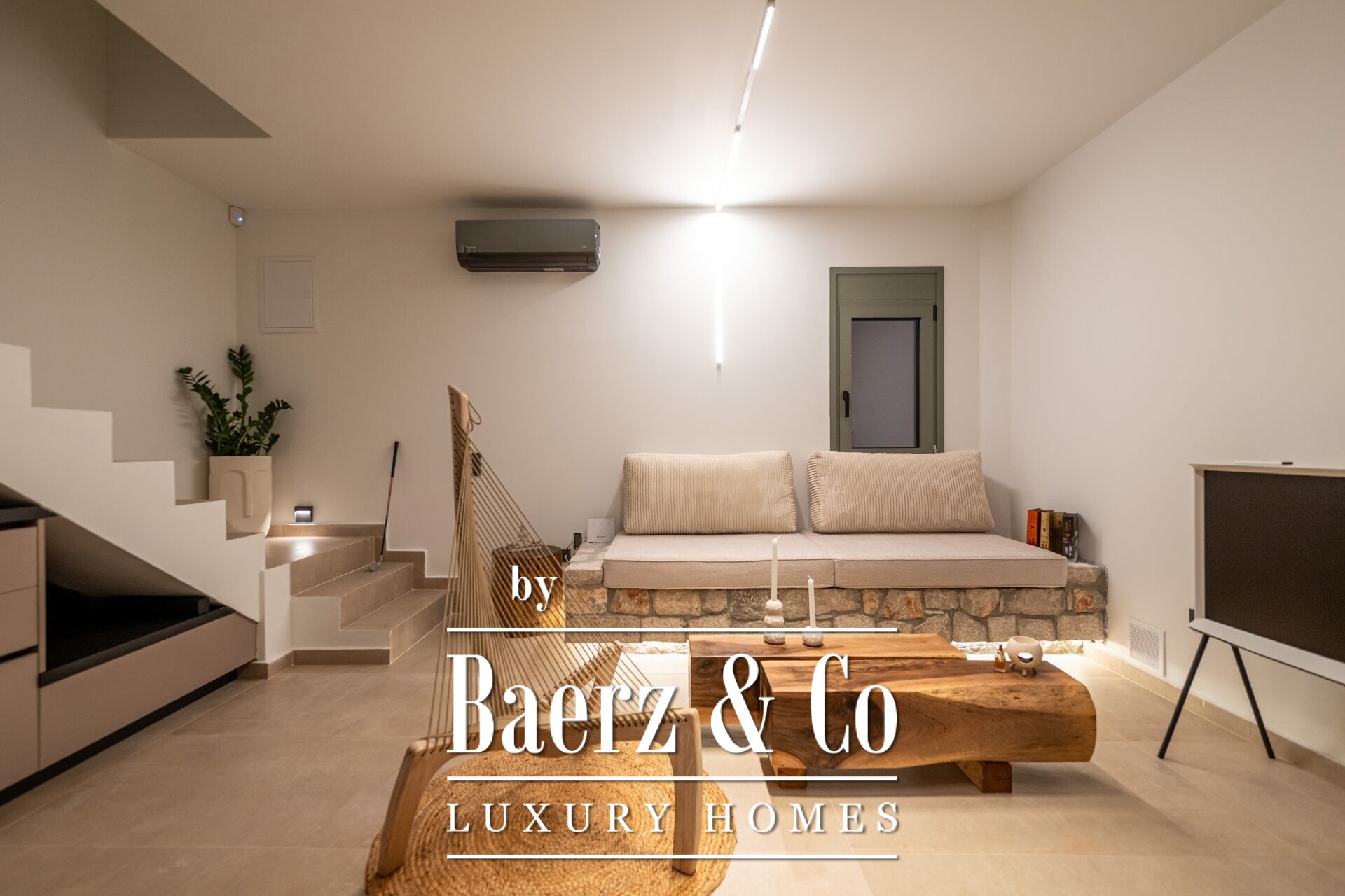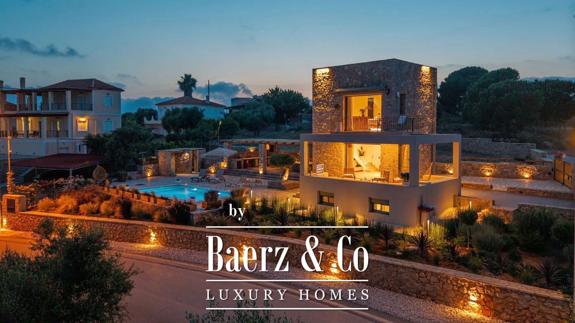 Stone villa Tragana biedt een uitzonderlijke kennismaking met het hedendaagse mediterrane leven. Deze nieuw gebouwde luxe villa is gelegen in een bevoorrechte, rustige enclave van Messinia en combineert tijdloze steenarchitectuur met een vrij uitzicht over het eindeloze blauw. De villa beslaat 140 m² op een privéperceel van 750 m² en wordt gekenmerkt door de zuidoostelijke oriëntatie, waardoor elke ruimte de hele dag door wordt ondergedompeld in natuurlijk licht.