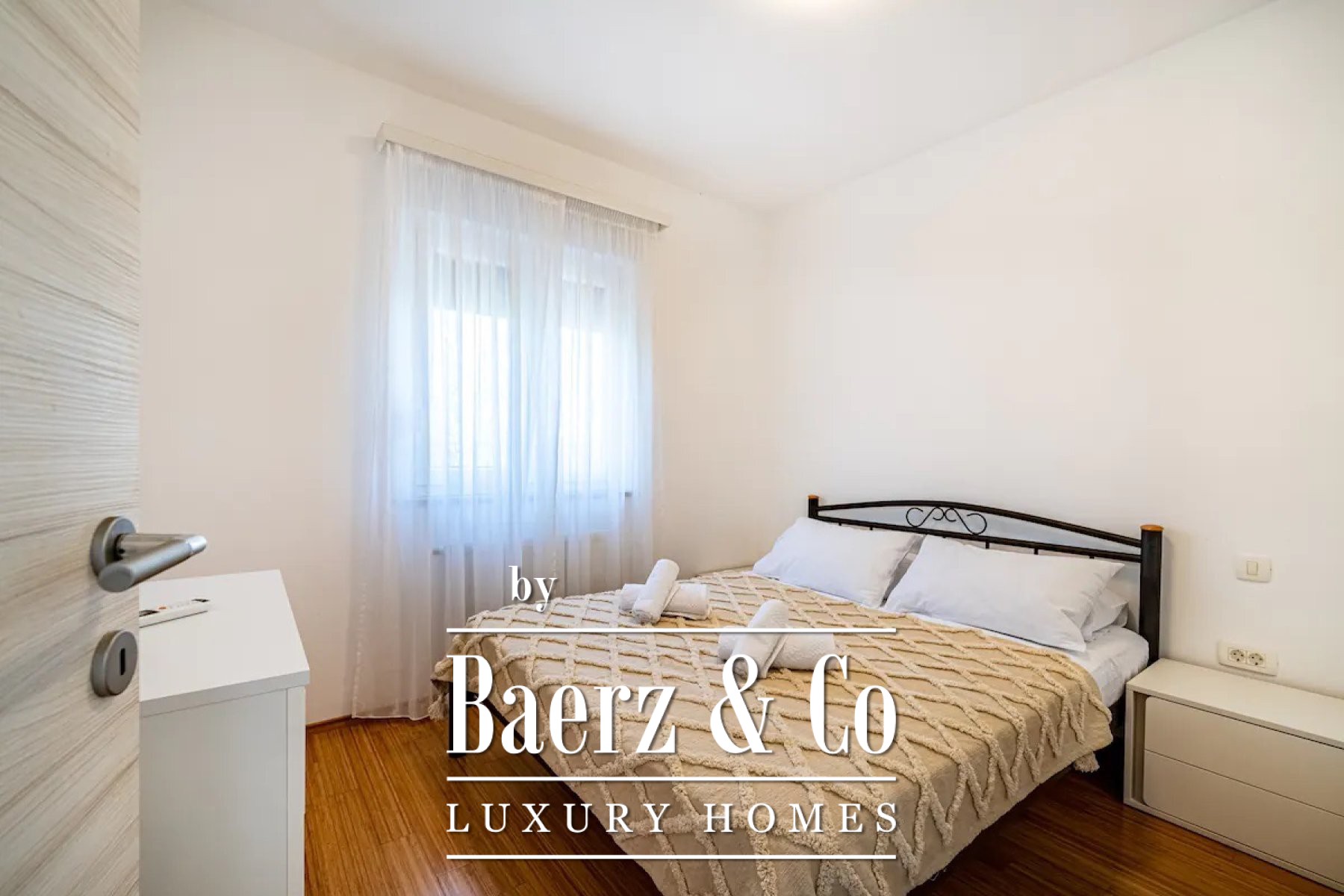 Čiovo, modern newly built house, located in a beautiful position only 400 m from the sea. Total BKP 180 m2. It extends over two floors, with two separate residential units. Completely modernly decorated and equipped.On the ground floor there is a living room, dining room, kitchen, two bedrooms and a bathroom. It also has a landscaped garden with outdoor furniture, a terrace, a garden and a fenced area for children.On