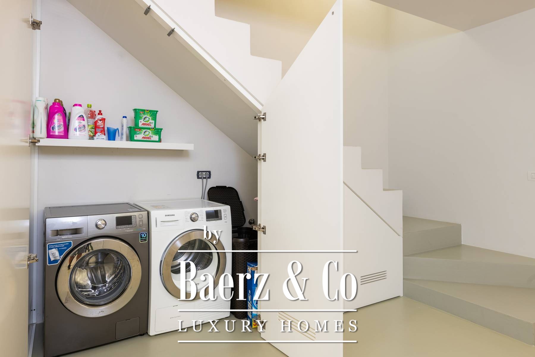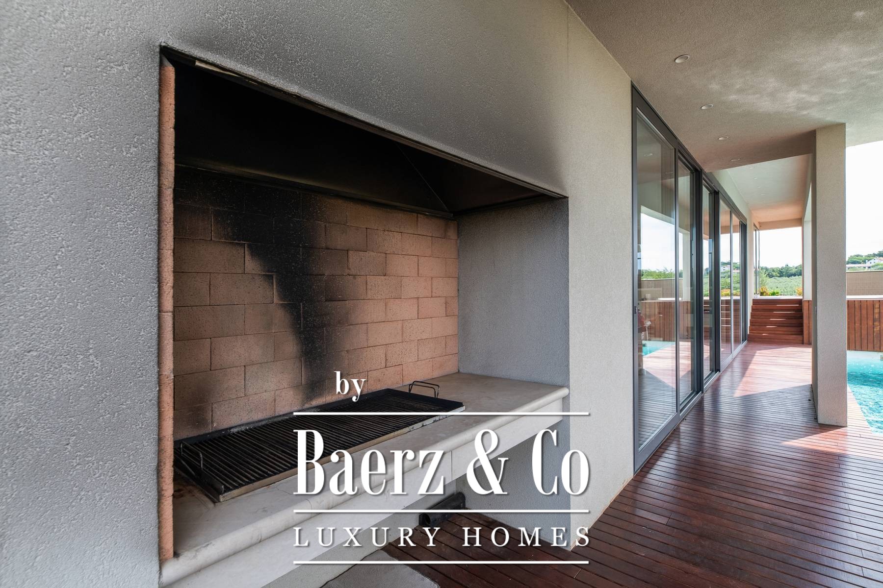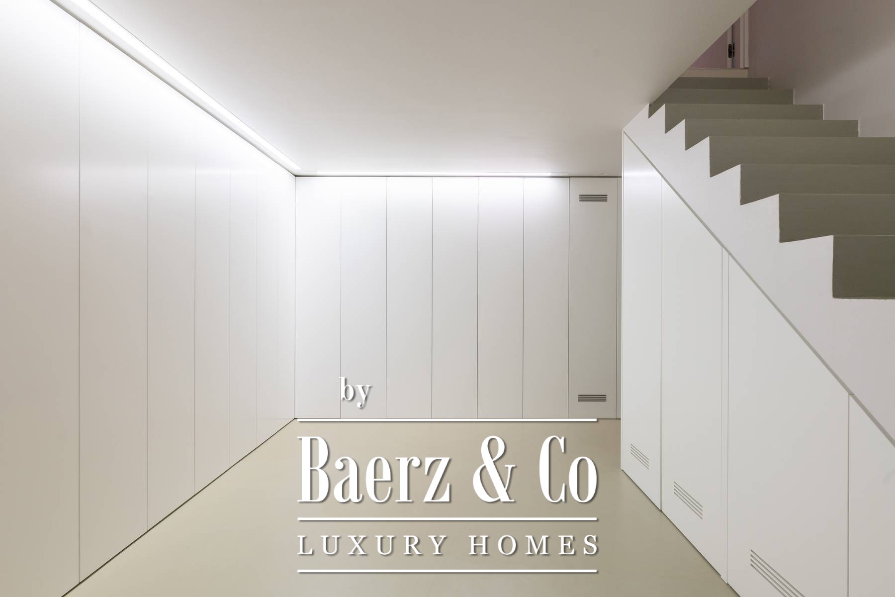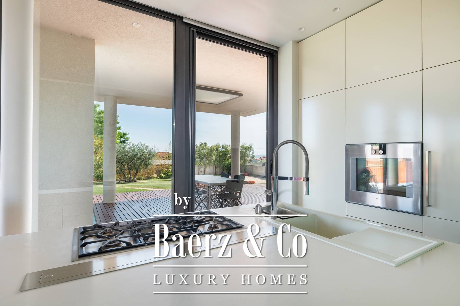 Modern smart house with 4.956 m2 land surrounded by olive groves just 400 meters from the favorite beaches of Umag. The architecture merges elegant design and stone as a traditional building element into an attractive villa with pool that provides the highest standards of modern living.The main entrance and driveway to the building are located on its west side, on the existing street, and the space for a garage with storage and a multimedia hall in the basement of the building.The ground floor consists of an entrance hall on the west side, a guest room with bathroom on the north side of the building and a unique living room, kitchen and dining room which is connected to the south facing terrace facing the sea, and north to the garden and outdoor terrace.In the entrance area, which is accessed west through the windshield, there is a garden on the north side of the house. The guest room is connected to the entrance area via an entrance hall from which one enters the bathroom. In the western part of the building, in addition to the mentioned windshield, there is a toilet to the north, and to the south there is an economic space related to the kitchen. On the west side of the south terrace, connected to the kitchen and the economic part, there is a summer kitchen covered with the volume of the upper floor.A staircase