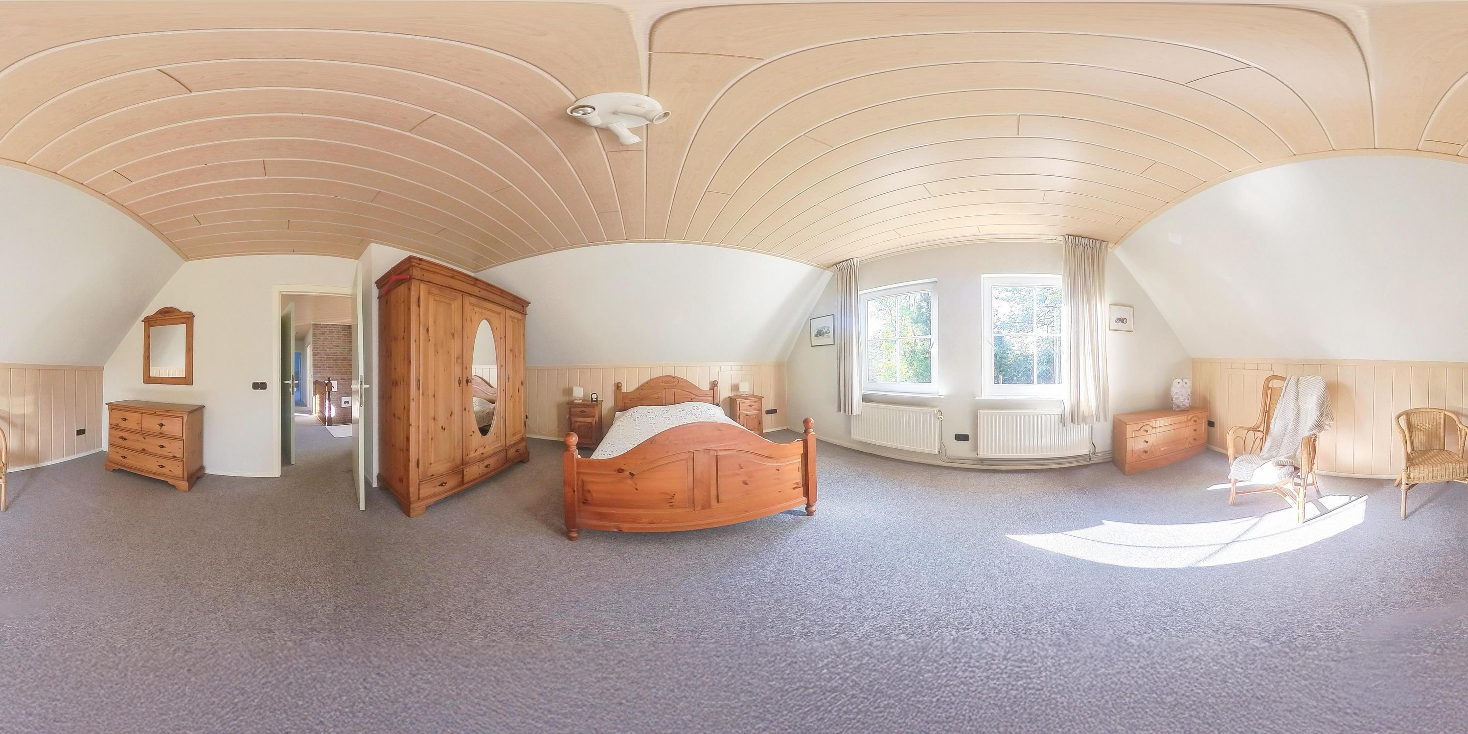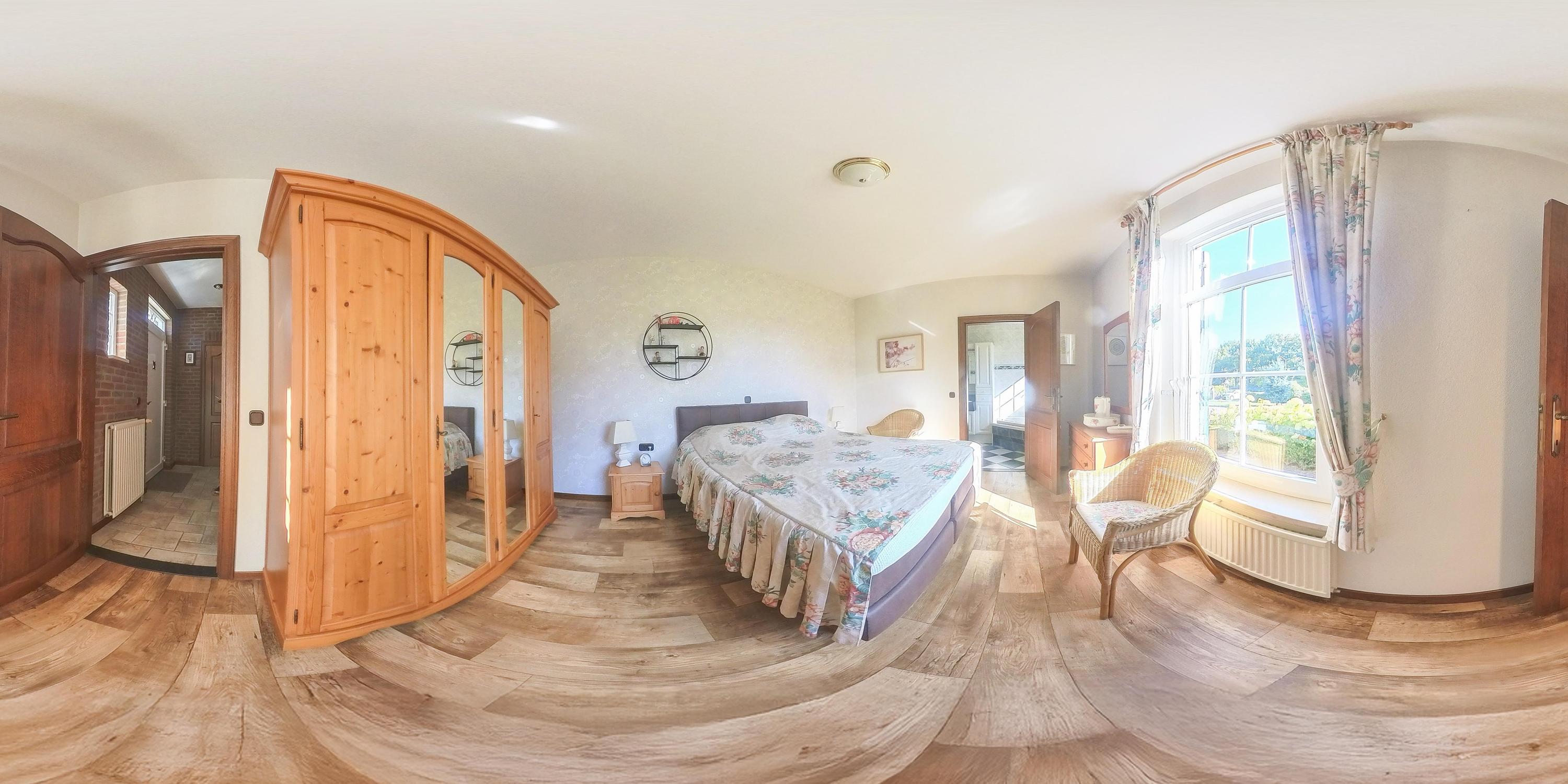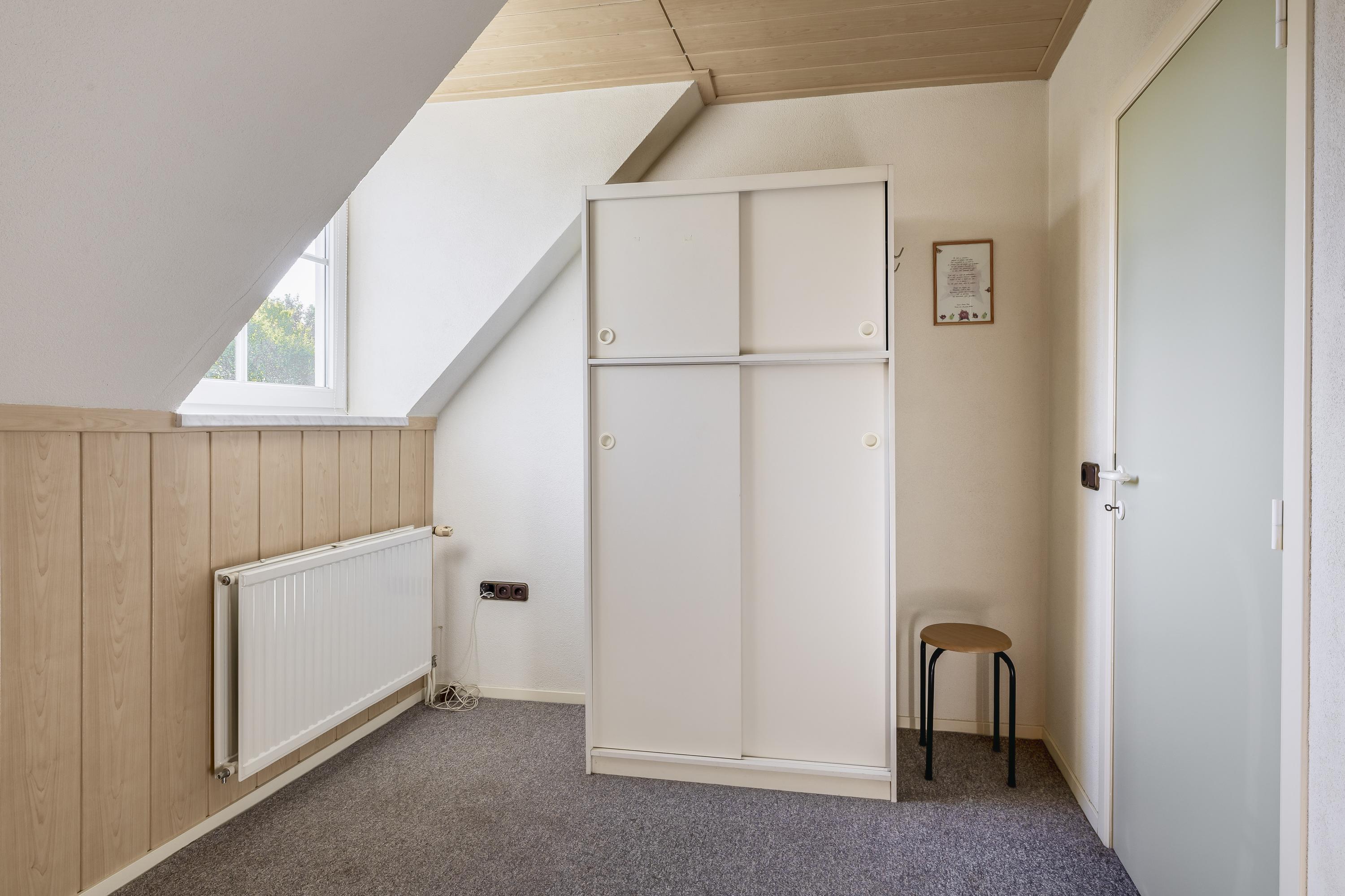 De eerste verdieping biedt ruimte aan drie slaapkamers, een badkamer en een zolderruimte. Alle slaapkamers en de zolderruimte zijn voorzien van vloerbedekking. Raampartijen zorgen voor natuurlijke lichtinval en ventilatie. Onder de dakschuinte is er bergruimte gecreëerd. De zolderruimte is uitgerust met de opstelling voor de CV-ketel (Vaillant) en een stofzuigsysteem. Een luik zorgt voor toegang tot de vliering.