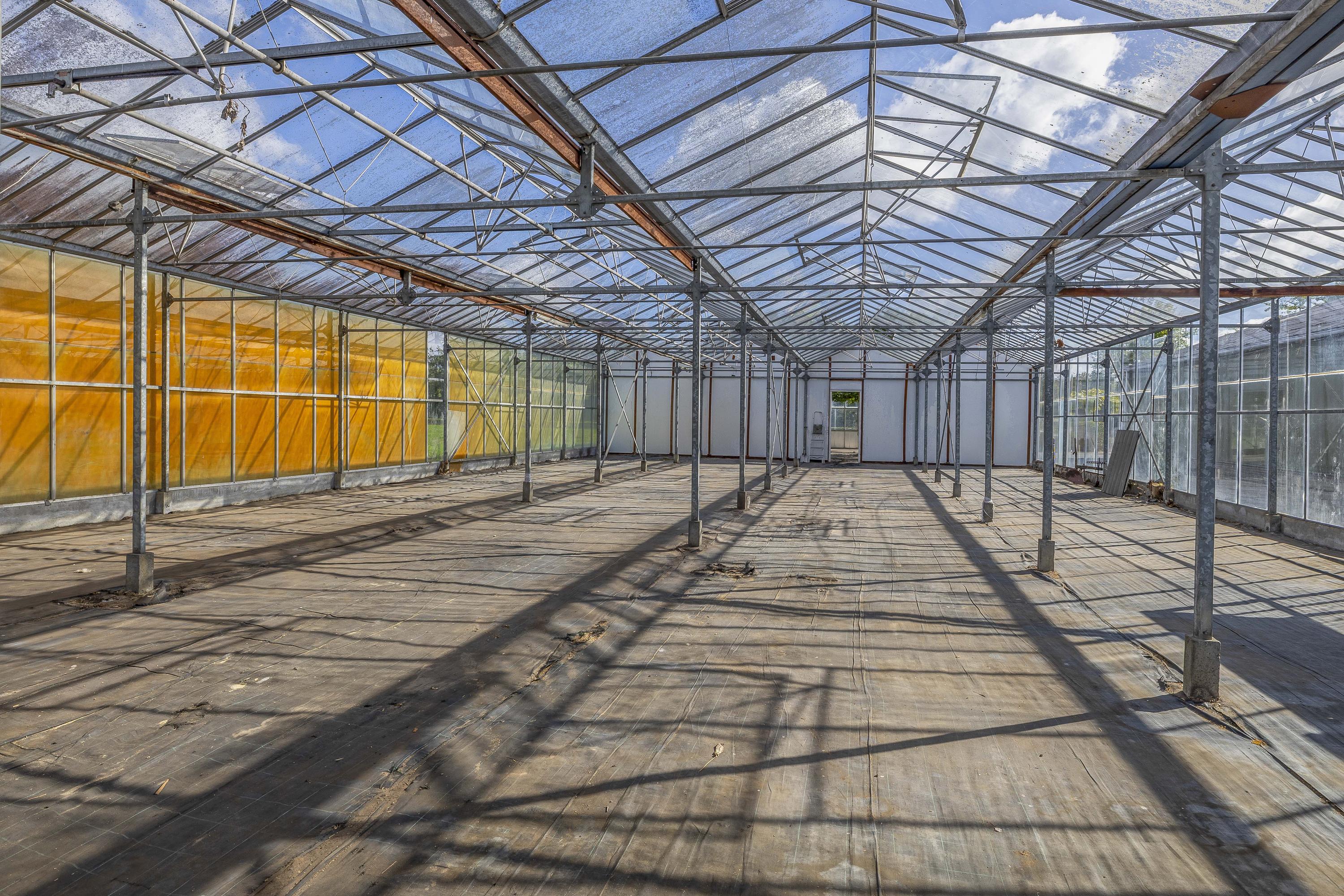 In de ruime, vrijstaande tuinbouwkas is elektra en krachtstroom aanwezig.
