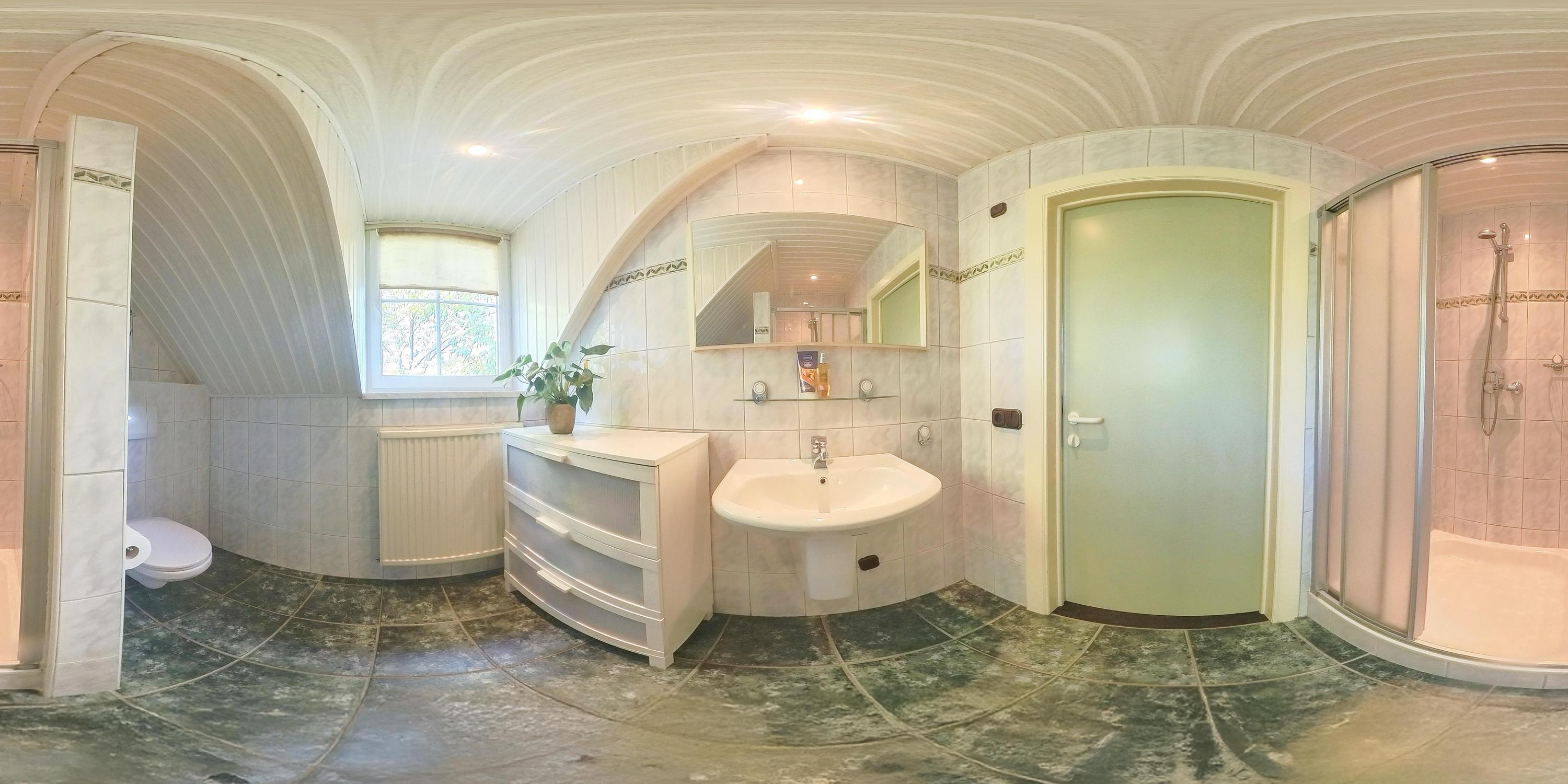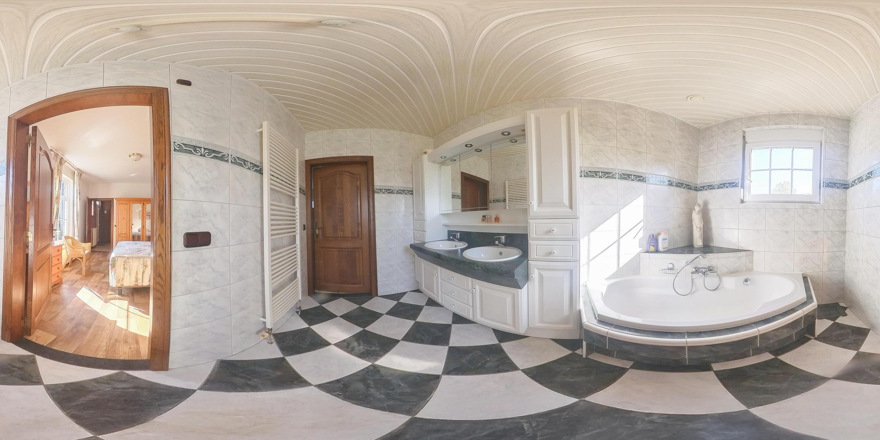 trap biedt toegang tot de 1e verdieping. De royale woonkamer is een heerlijke ruimte. De grote raampartijen en een schuifpui bieden een prachtig vrij uitzicht op de tuin. Het houten balken plafond en de schouw met gaskachel zorgen voor extra sfeer in de ruimte. Ook is er airconditioning aanwezig. De keukeninrichting in de leefkeuken is in een hoekopstelling geplaatst en uitgerust met een vaatwasser, spoelbak, keramische kookplaat, oven, magnetron en een koelkast. Vanuit de keuken bieden raampartijen ook zicht op de tuin. De bijkeuken is deels betegeld en uitgerust met de aansluitingen voor de wasapparatuur. Een loopdeur zorgt voor toegang tot de achtertuin. De badkamer is geheel betegeld en ingericht met een ligbad, een dubbele wastafel met meubel en een designradiator. Aangrenzend aan de badkamer is de slaapkamer gelegen.