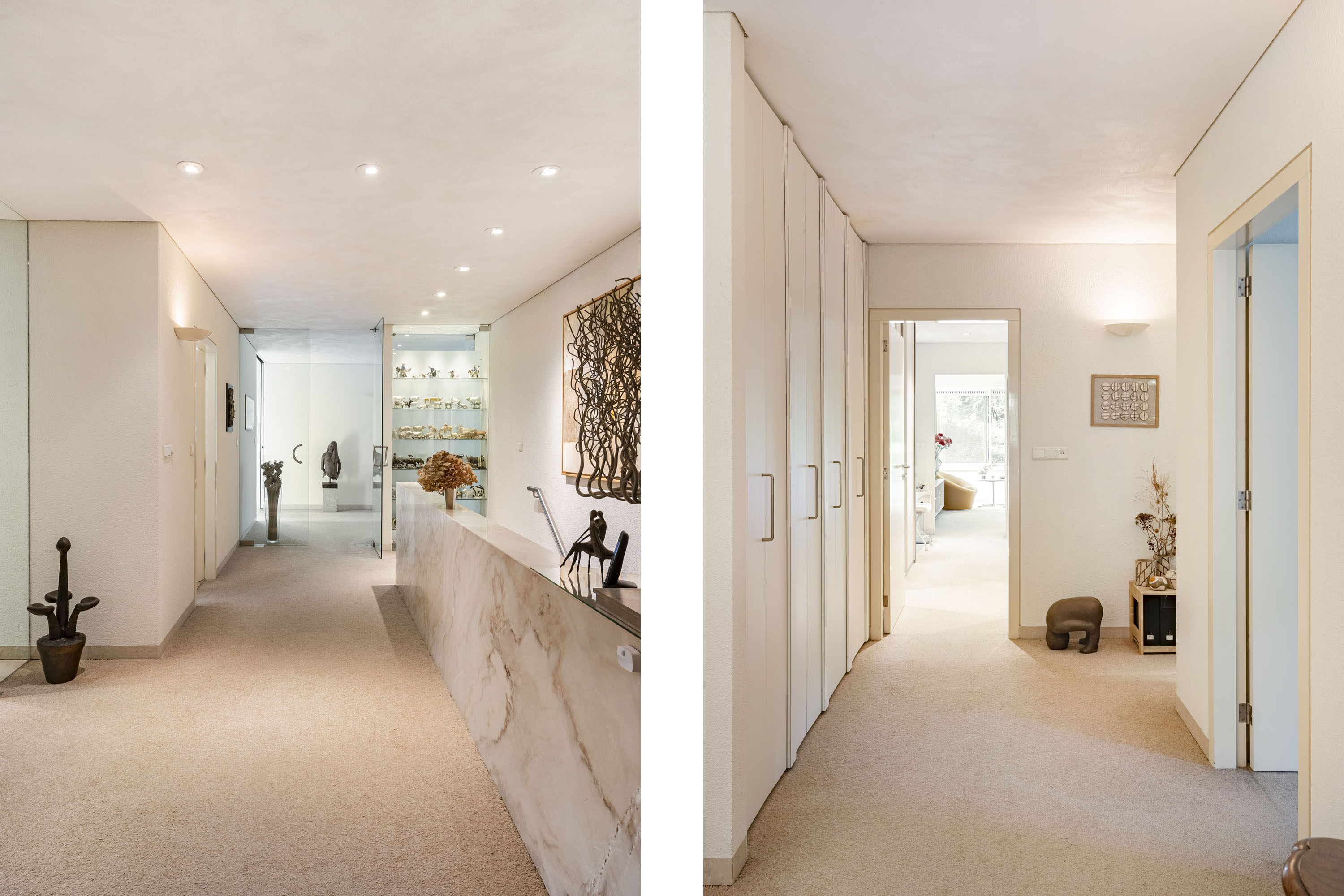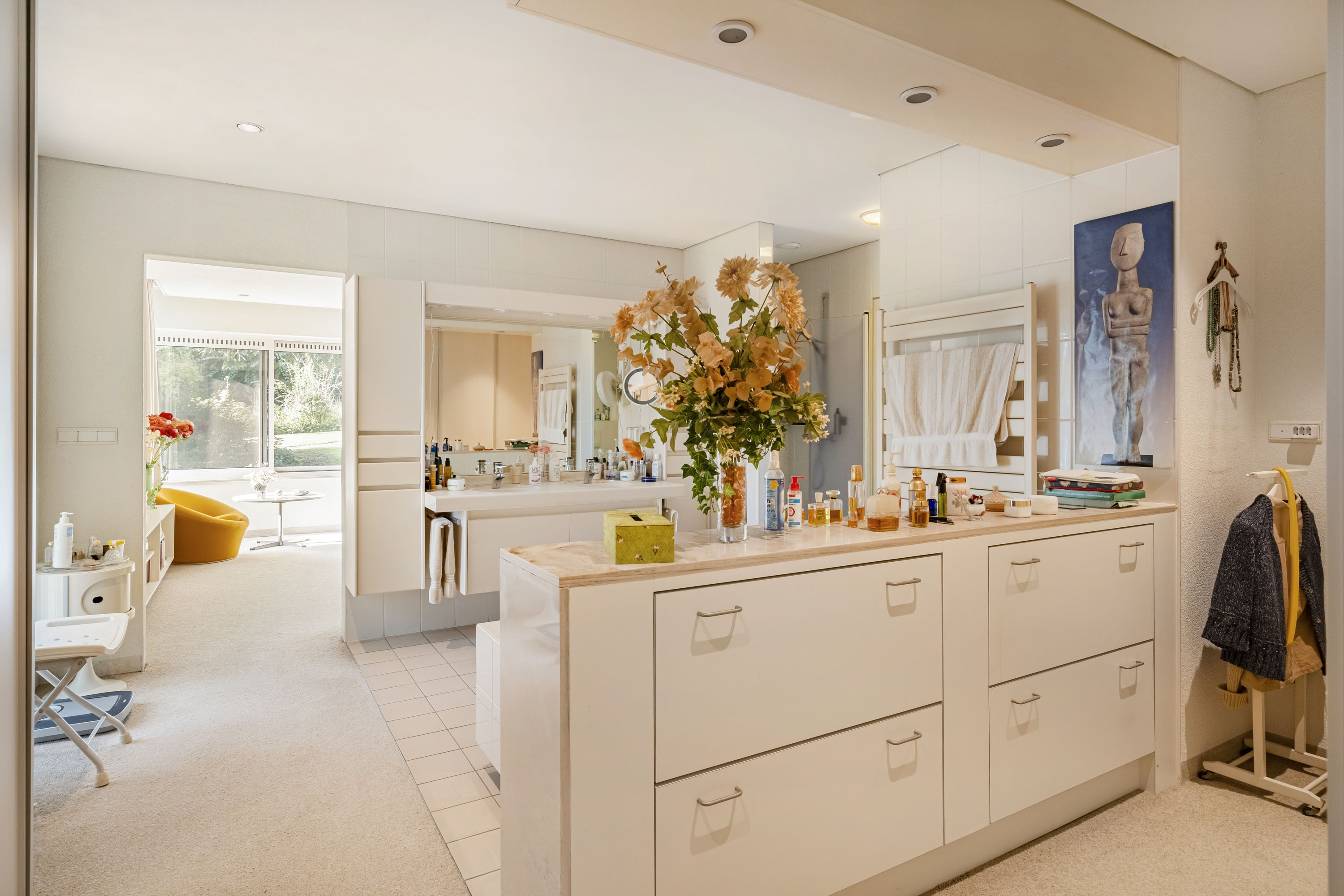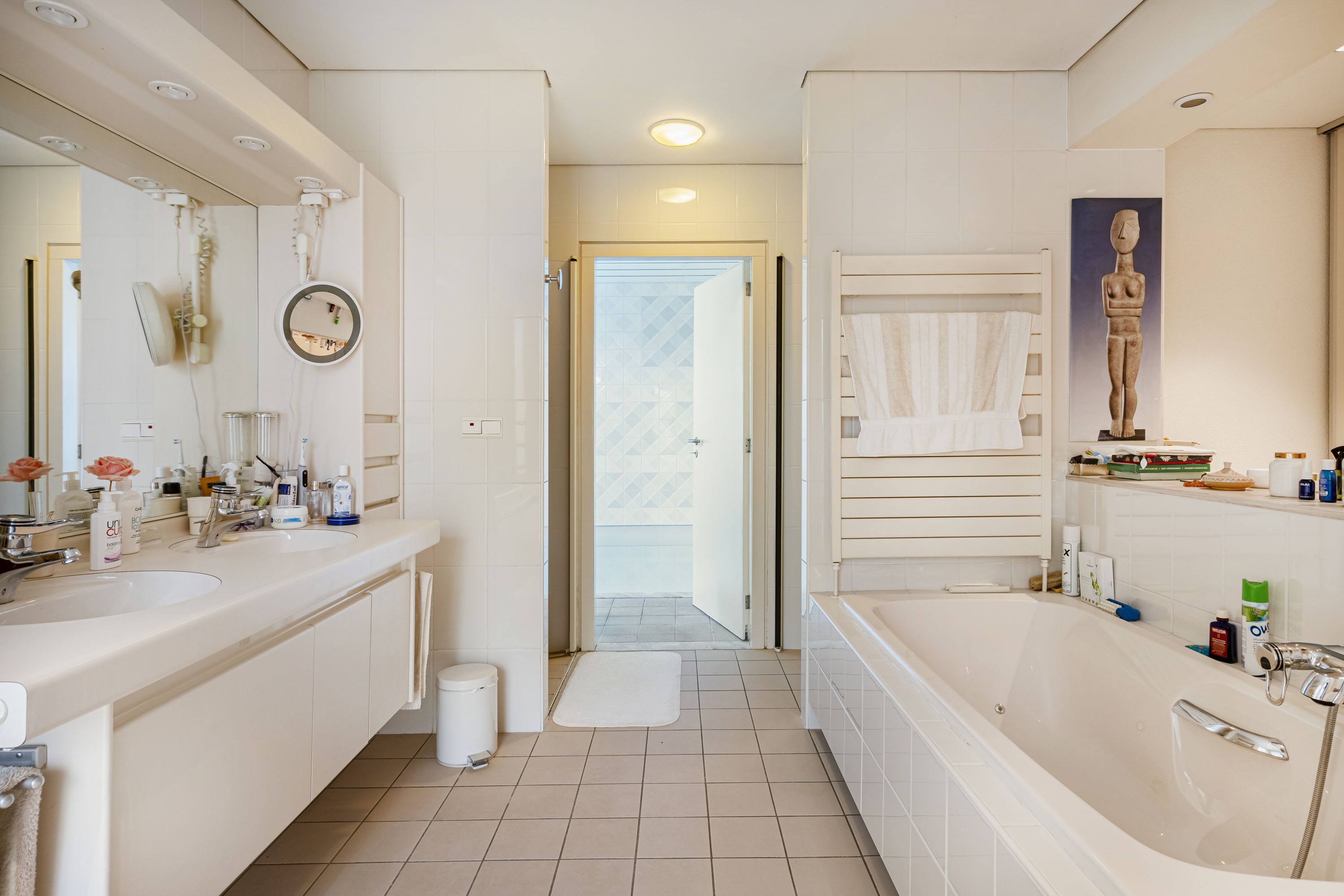 De badkamers beschikken over een wastafel, douche en de royale badkamer over een extra ligbad en 2e toilet. De masterbedroom is gesitueerd aan de tuinzijde van de woning en is voorzien van veel kastruimte en airco.