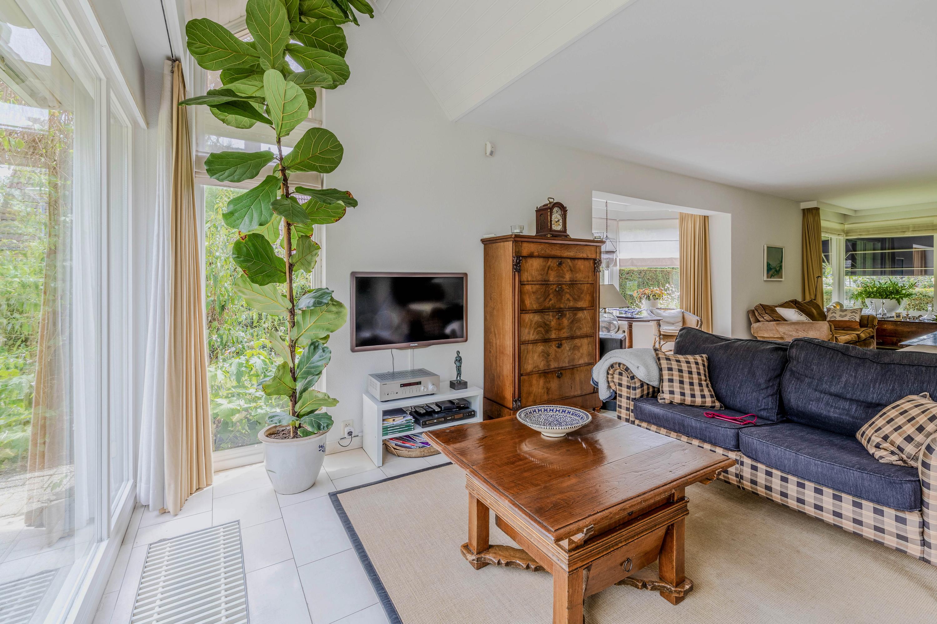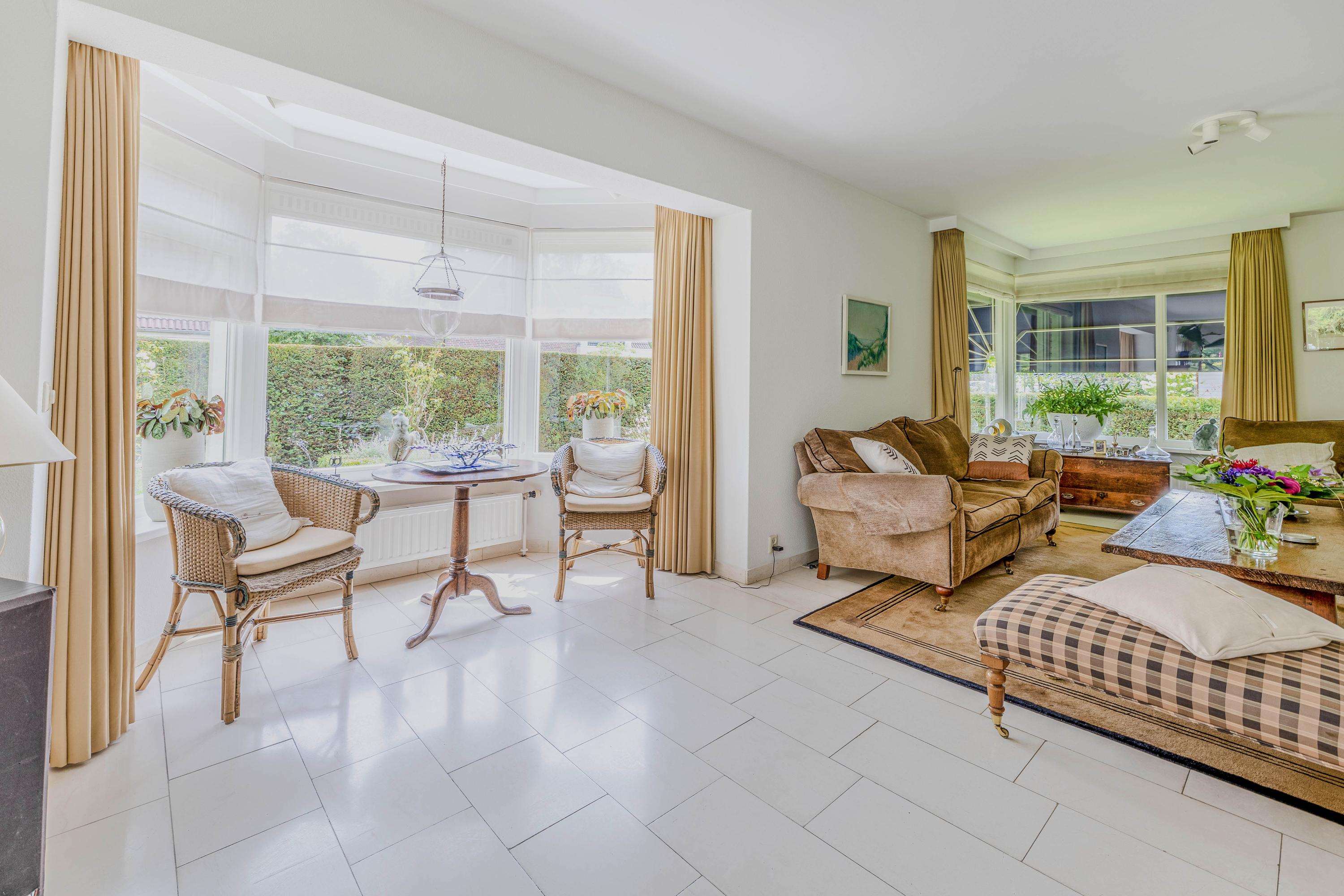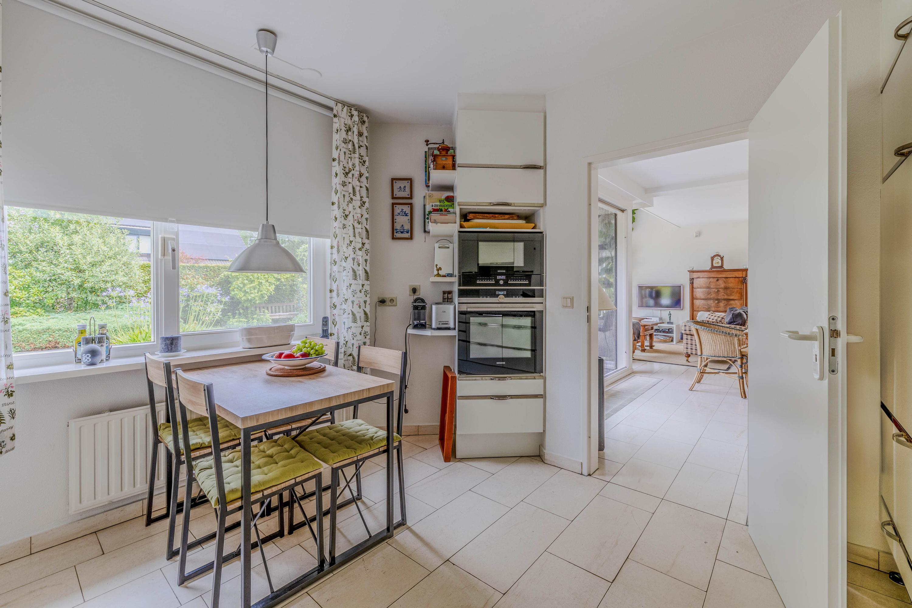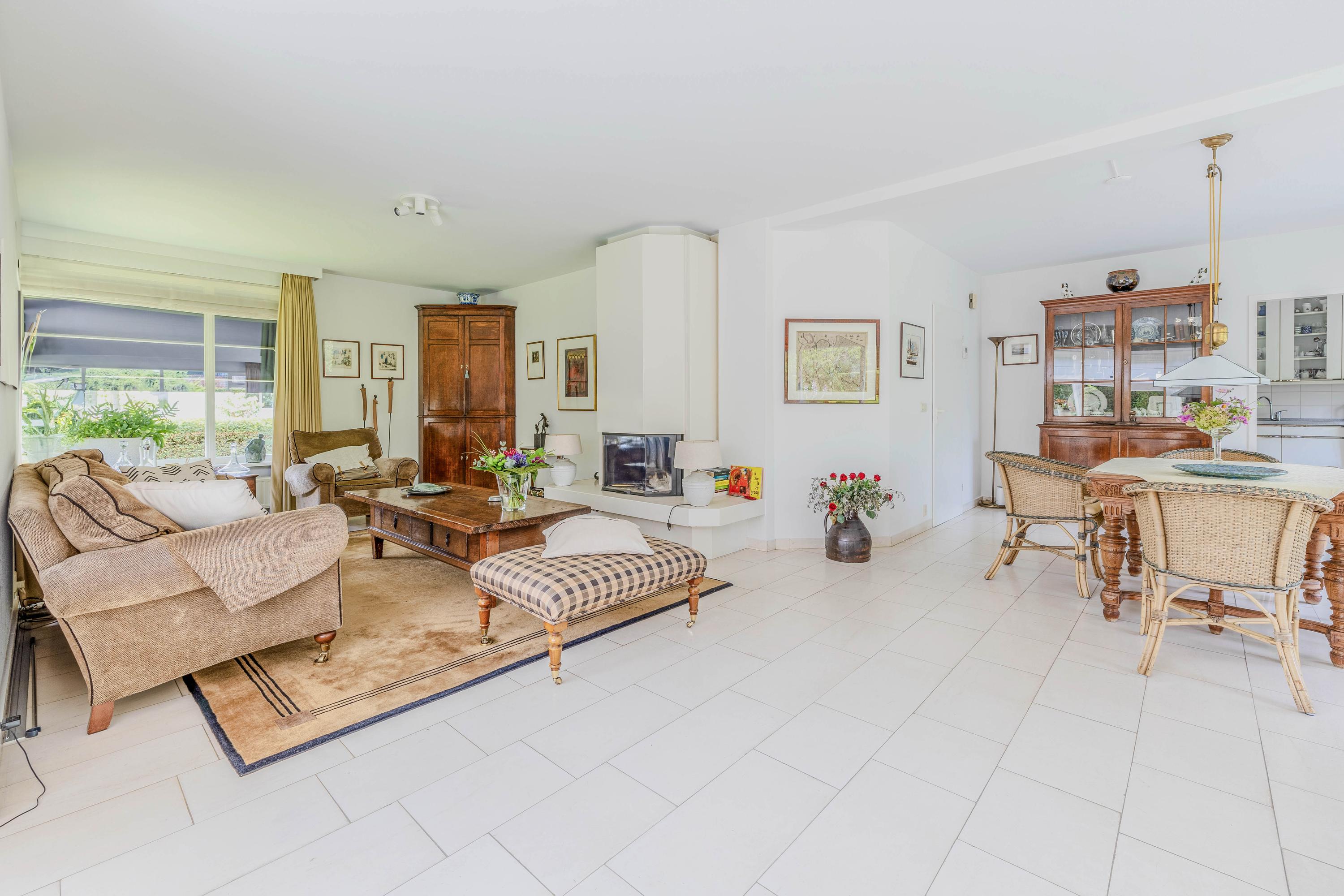 Vanuit de woonkamer loopt u via een schuifpui naar het royale- en deels overdekte terras en tuin. De ramen zijn voorzien van automatische zonwering.