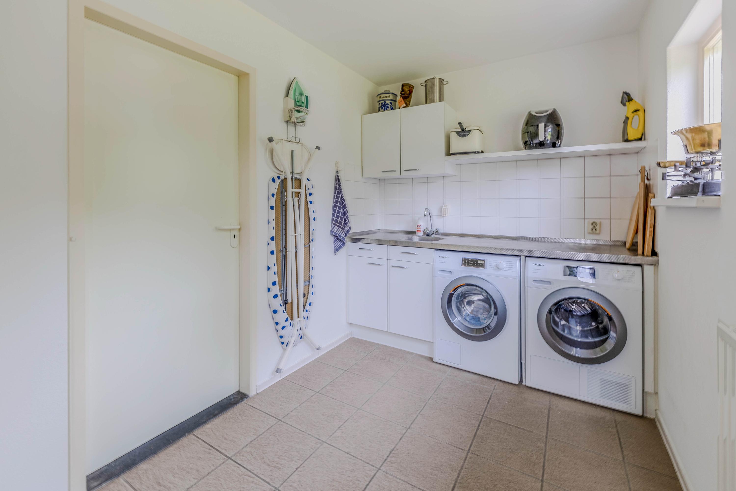 Op de begane grond vindt u een ruime slaapkamer (levensloopbestendig) van ca. 16m² met volledige badkamer, een ruime keuken (11m²) en bijkeuken (7m²) met de witgoedaansluitingen.