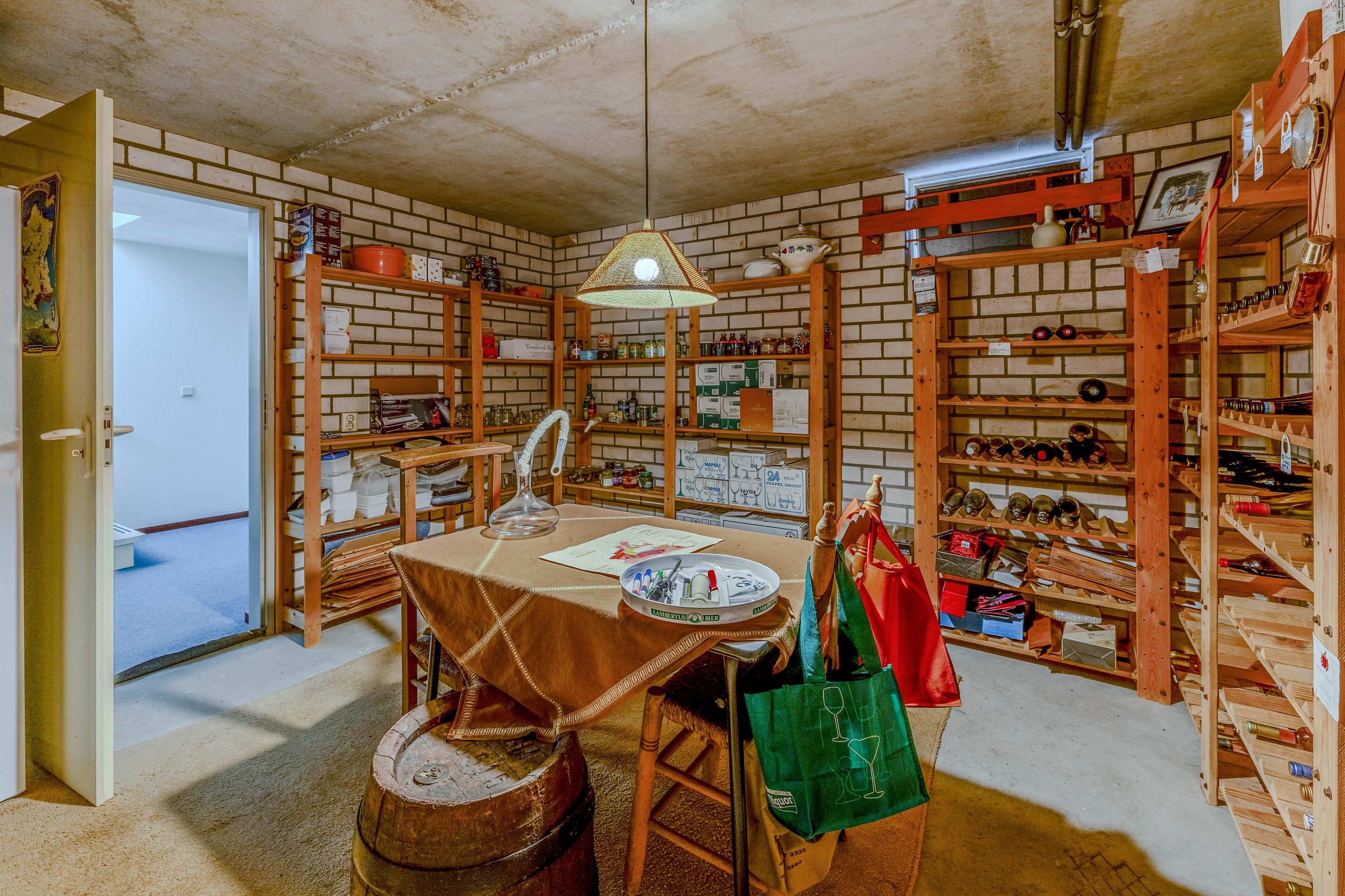 Via de hal op de begane grond kunt u via een trap naar een kelder van ongeveer 20m² voor bijvoorbeeld het bewaren van uw wijn.