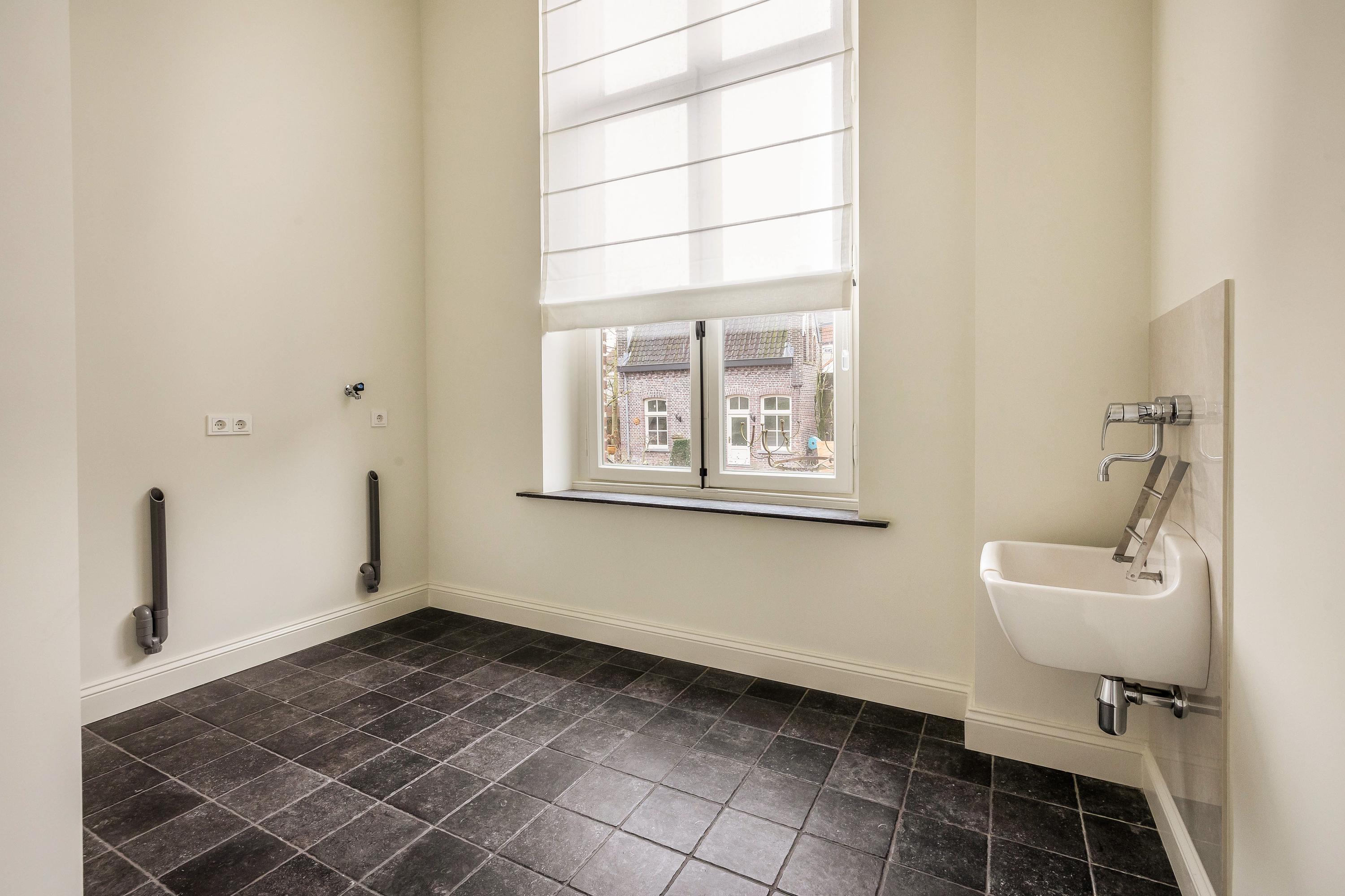Via een eigen voordeur betreedt u de ruime ontvangsthal, die direct een gevoel van grandeur en elegantie oproept. De hoge plafonds zorgen voor een indrukwekkende ruimtelijkheid, terwijl de hoogwaardige afwerking met kwaliteitsmaterialen de exclusieve uitstraling van het appartement benadrukt. Vanuit de hal is de afzonderlijke, zeer royale, keuken toegankelijk welke is uitgevoerd met karakteristiek tegelwerk en voorzien van originele, historische details die het monumentale karakter van het pand tot zijn recht laat komen. Aangrenzend aan de keuken bevindt zich de bijkeuken. Deze is uitgerust met een wastafel en de benodigde aansluitingen voor het witgoed. In de hal is tevens een stijlvol separaat toilet gesitueerd.