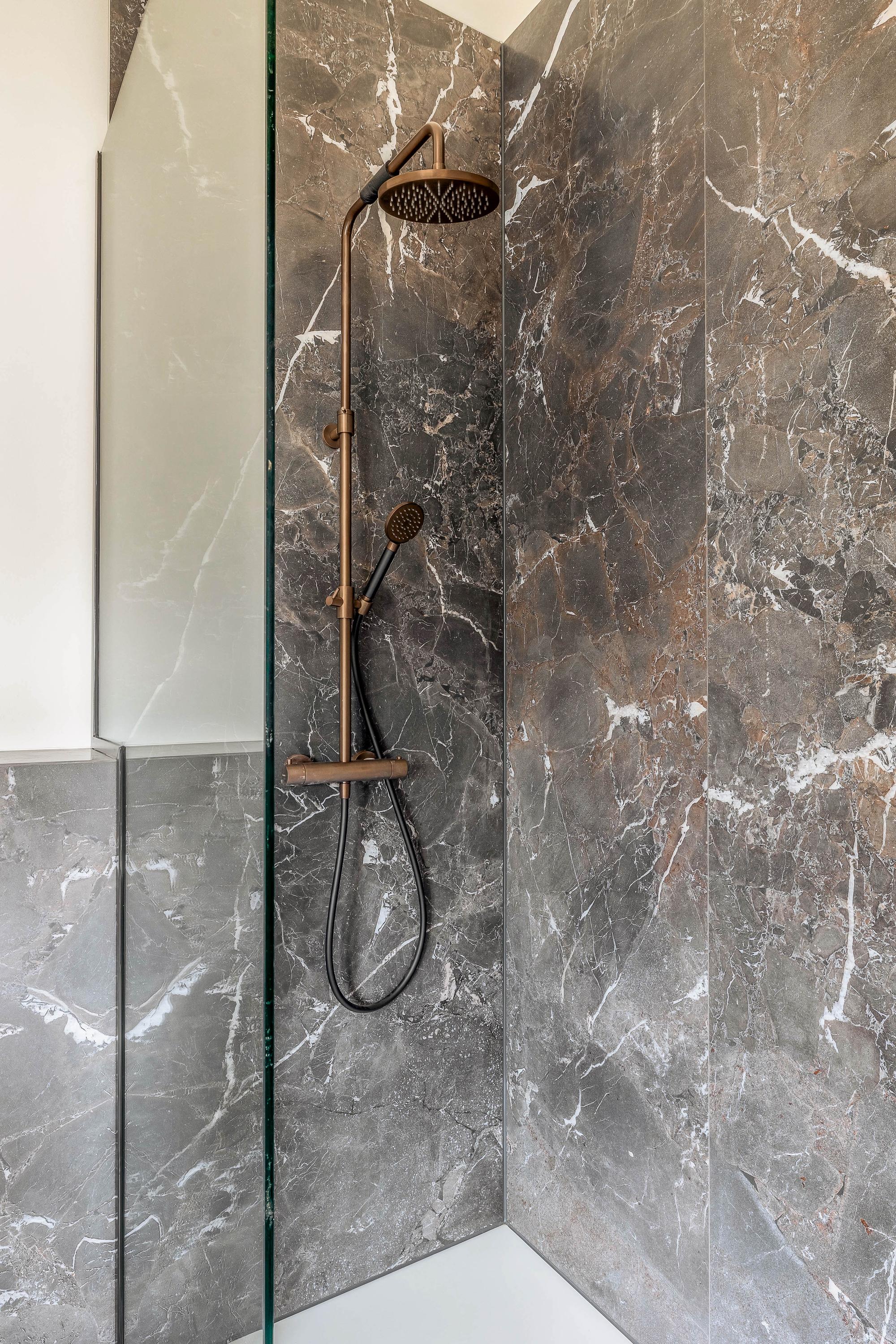 • Luxe badkamer met een moderne afwerking en gebruik van kwaliteitsmaterialen, inclusief een inloopdouche en stijlvol sanitair;