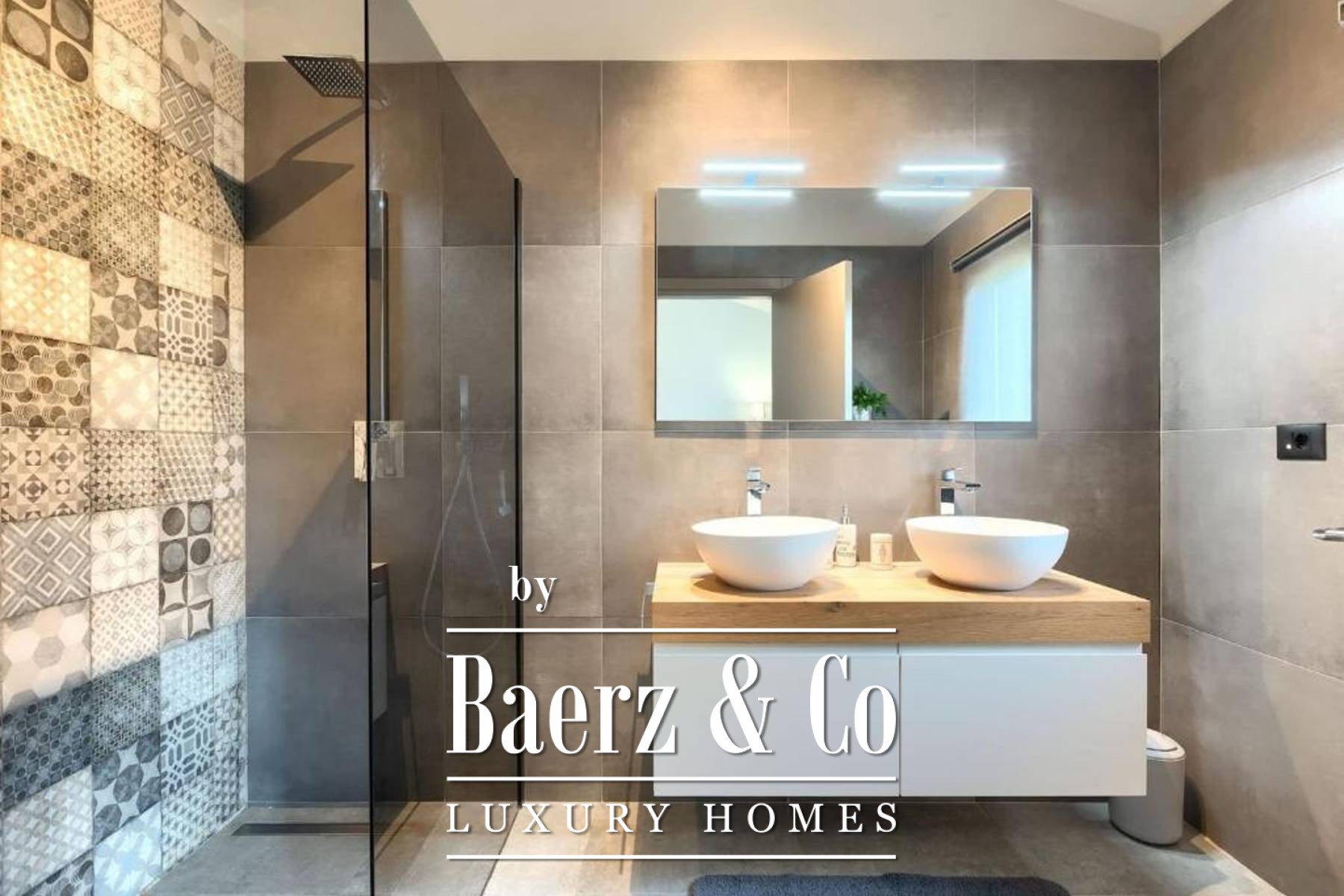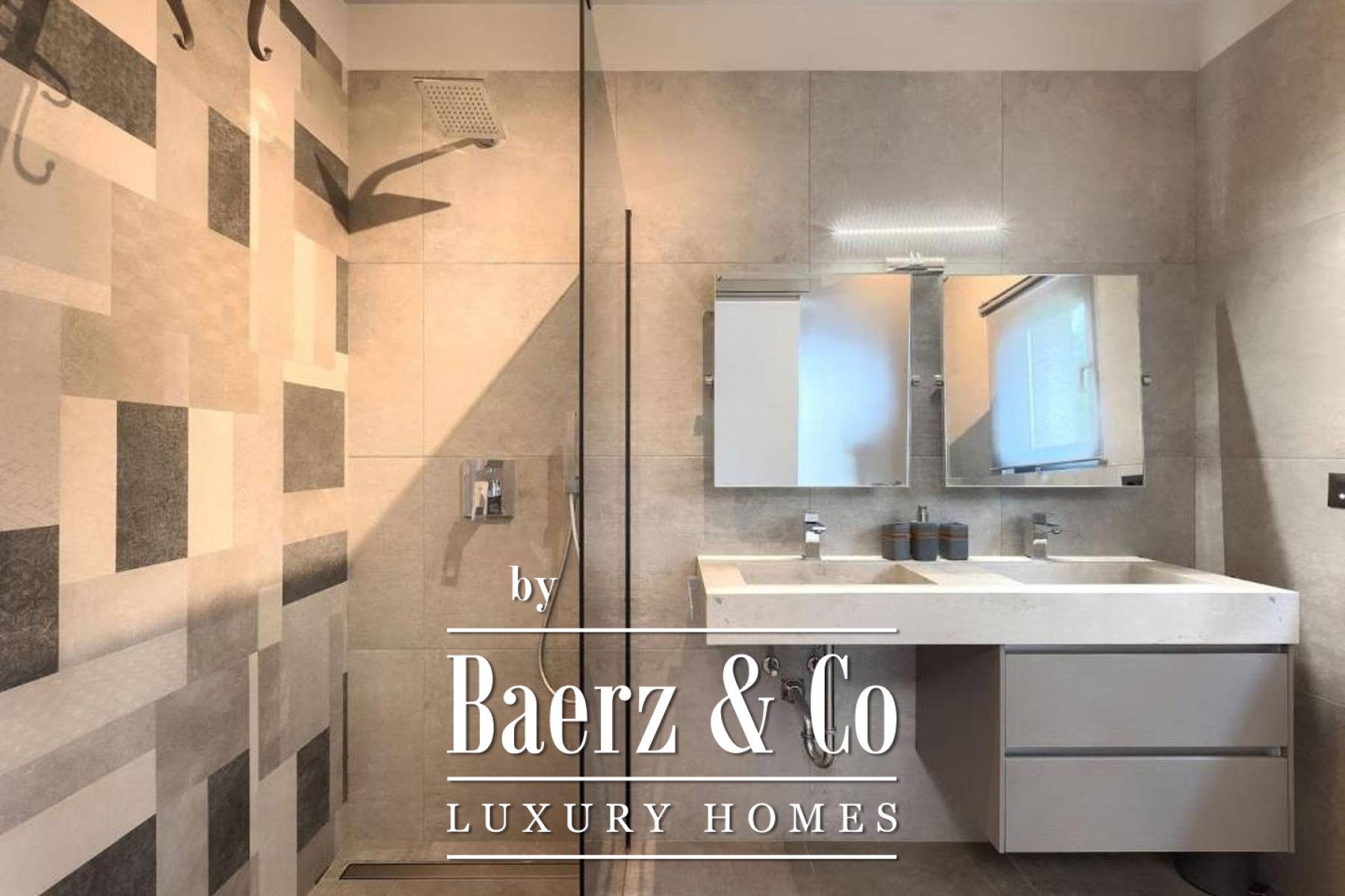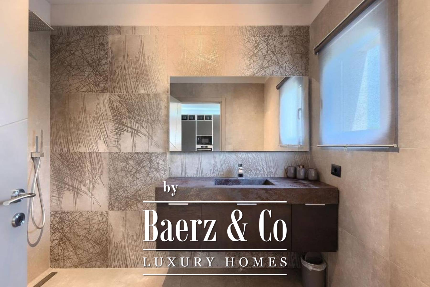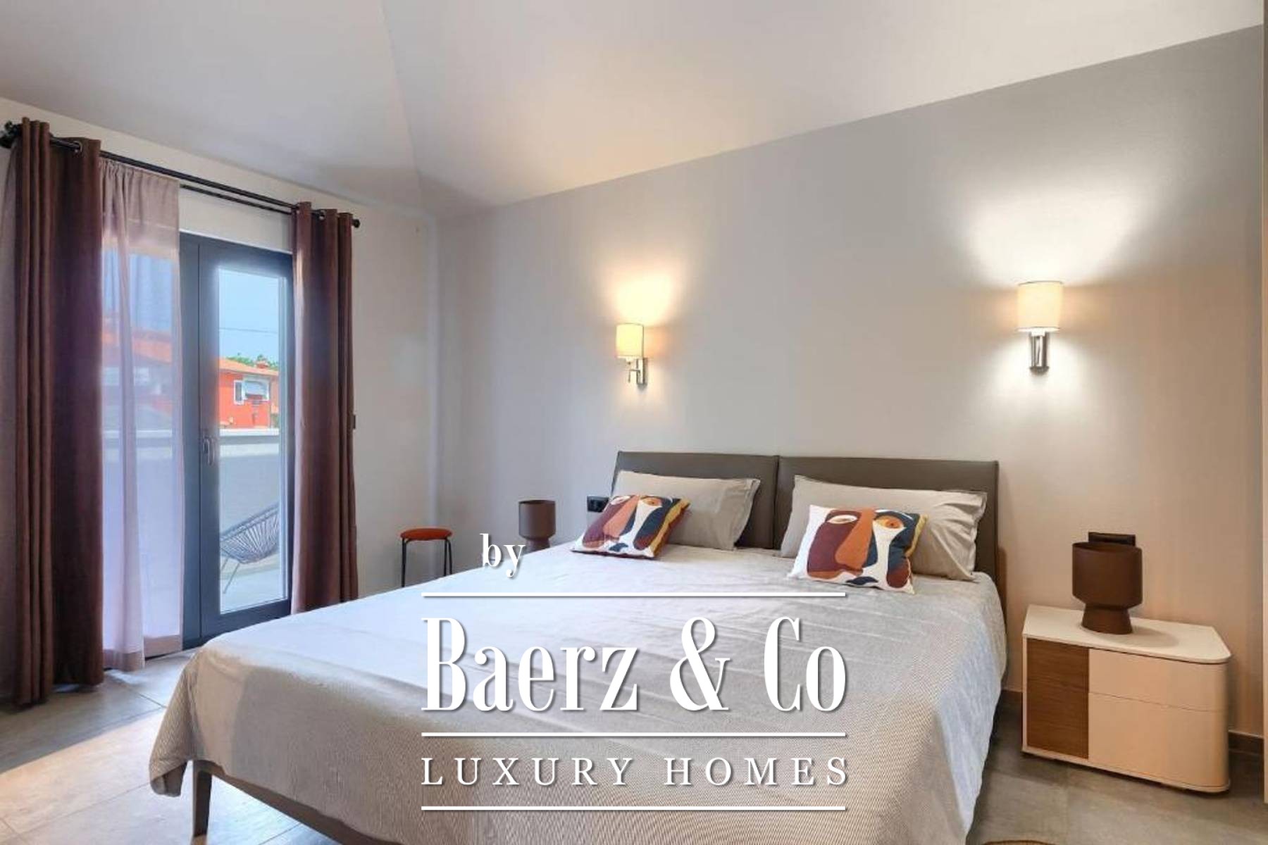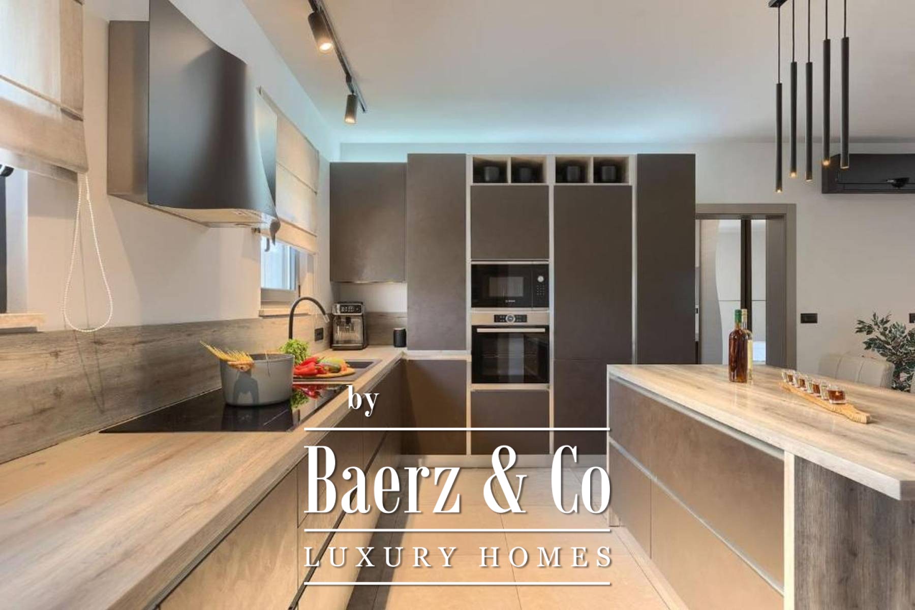 Not far from Vižinada is this luxurious, modern, and rustic villa that was built in 2020 and is located on a private plot of 1630 m2 with a beautiful panoramic view of the sea. The villa of 280 m² is spread over two floors. On the ground floor, there is a spacious living room with a fully equipped kitchen, a dining room, a bathroom, and a bedroom with its bathroom. An internal staircase leads us to the first floor, where there are three more bedrooms, each with a bathroom. The villa also has a basement with an area of 350 m2. On the large, fully fenced property, there
