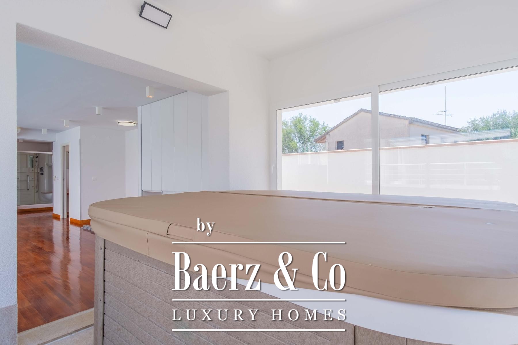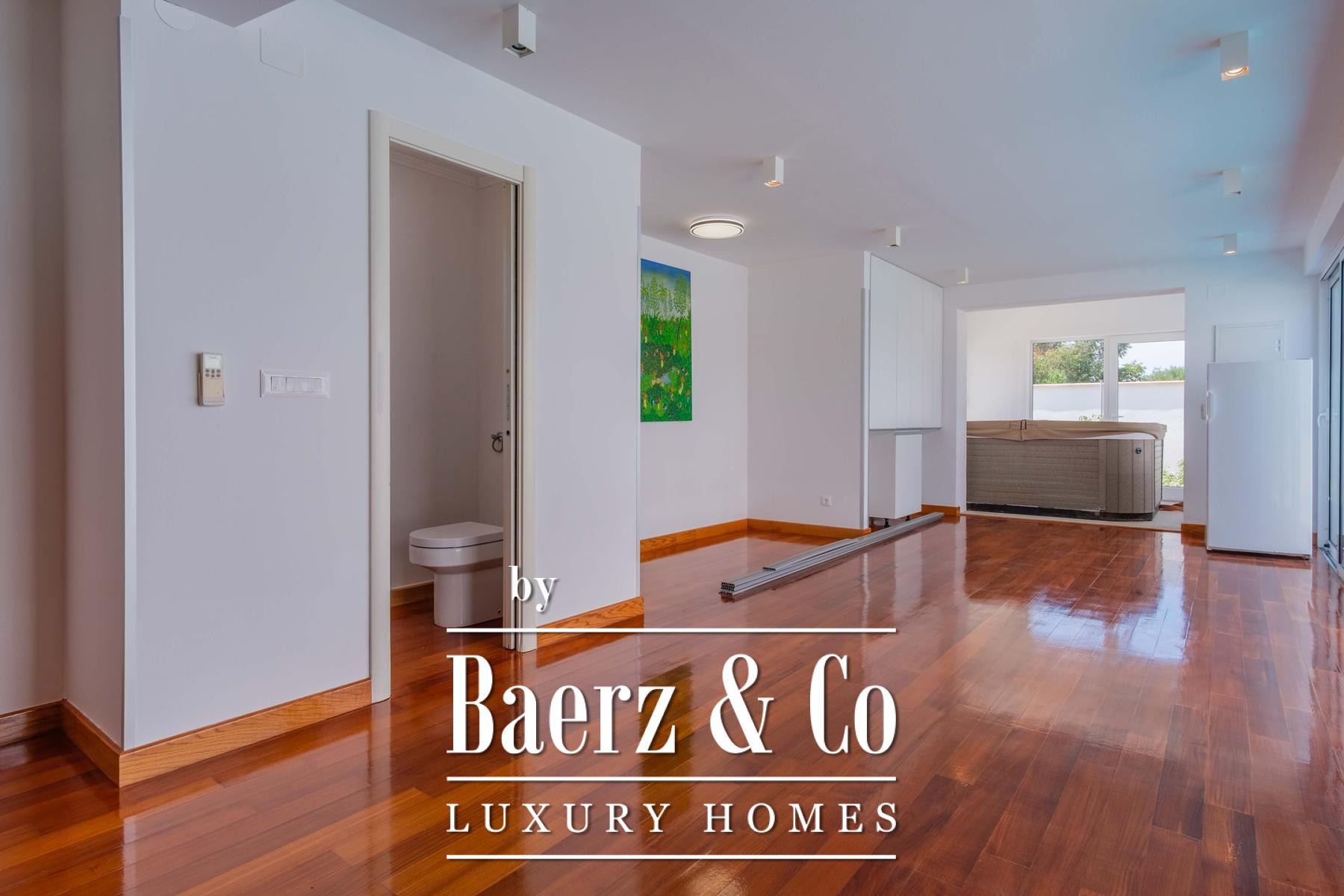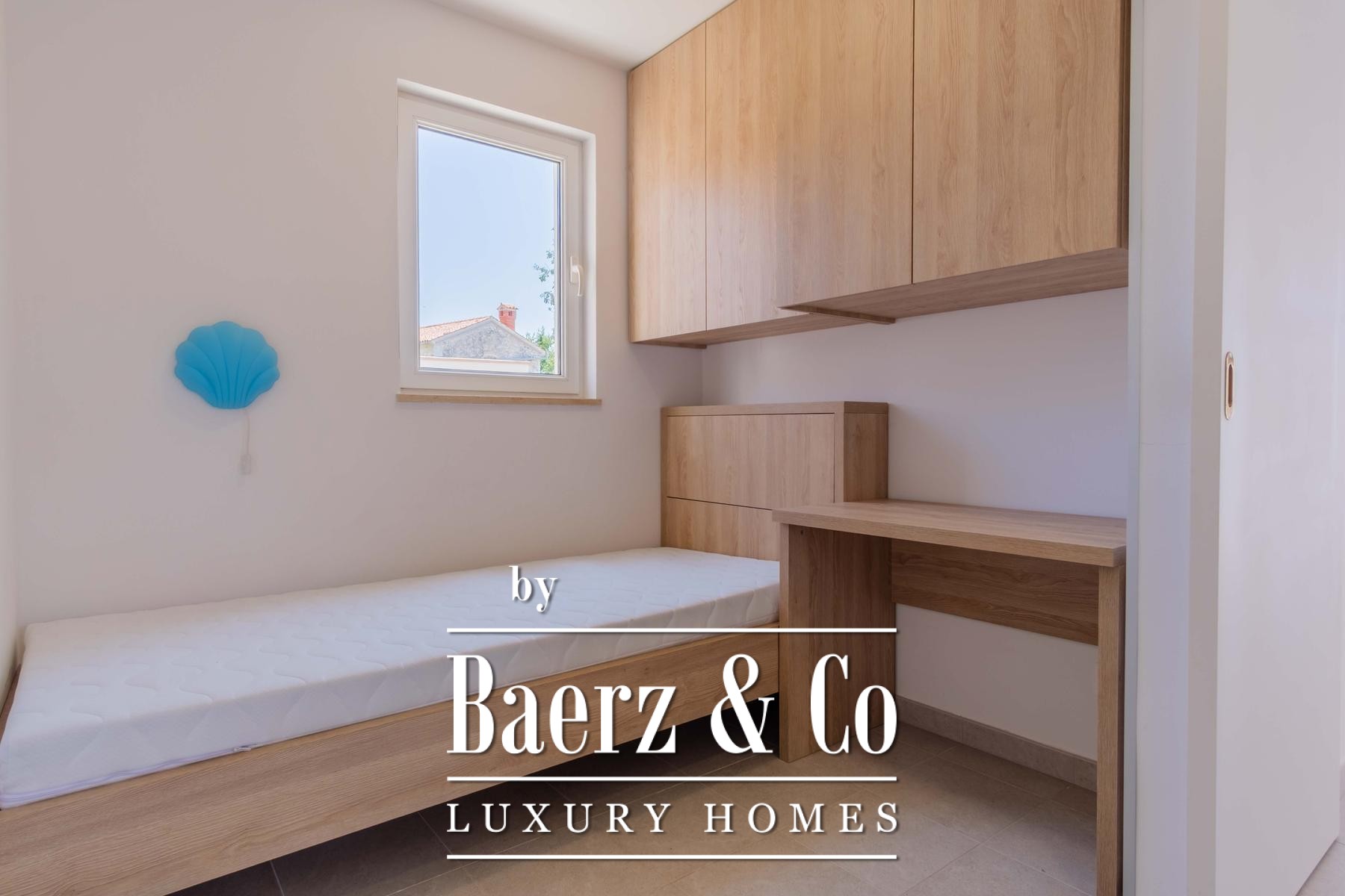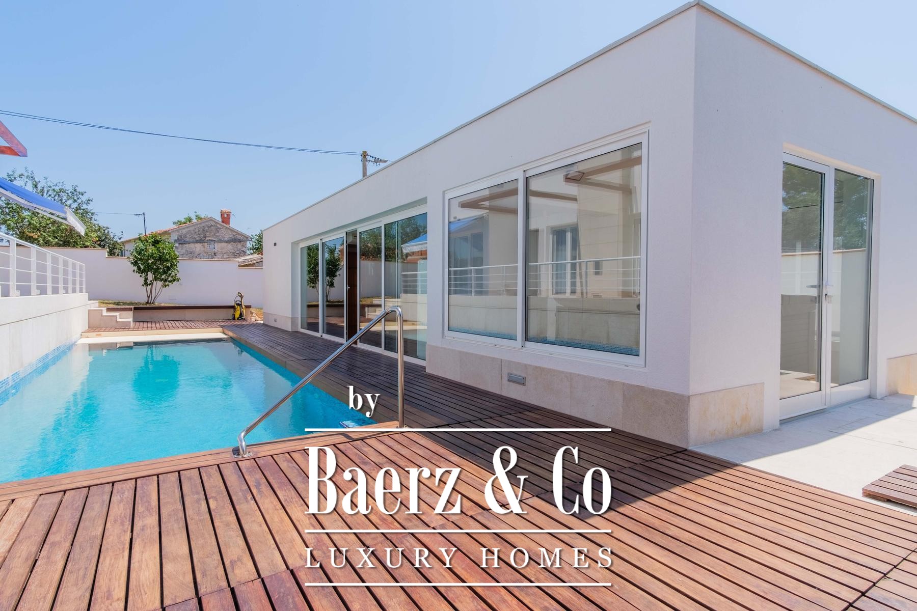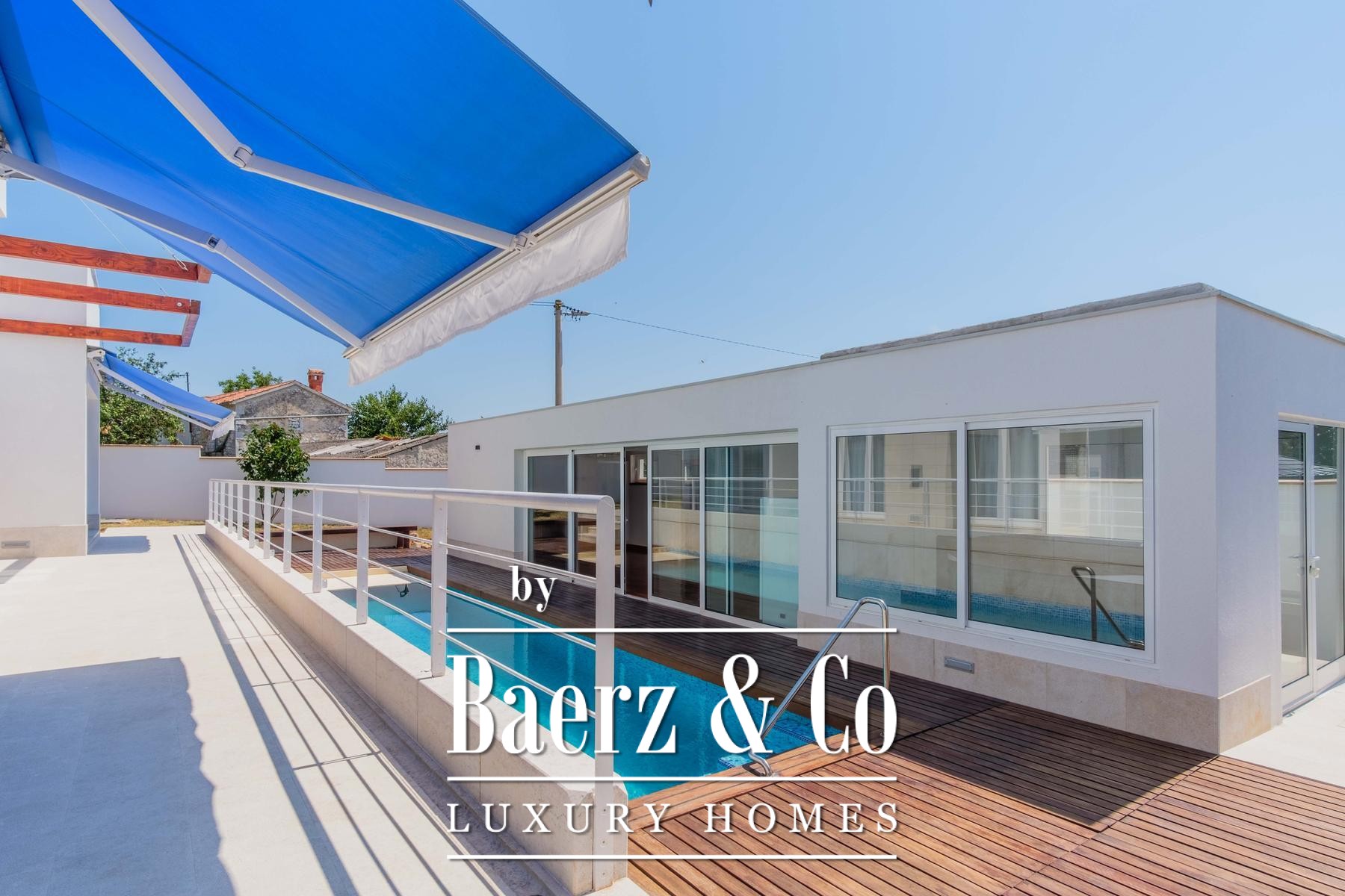 The villa has a modern design and luxurious interior, equipped with high-quality materials and in 344 m2 offers an ideal layout of spacious rooms as well as a sea view.It extends over two floors, so the ground floor has a spacious living room decorated with a fireplace by the famous Piazzetta company, a separate kitchen with a dining room and a pantry, then two bedrooms, each with its own toilet, while in between there is a shared shower cabin.A high-quality staircase leads us to an open gallery with a hallway that extends through all the wall surfaces, thus leaving a feeling of luxury where it stands out from the rest. On this floor there are two rooms with the potential to be converted into two separate apartments, given that they contain kitchen installations and gas installations, while currently they serve as rooms with a bathroom, pantry and terrace.An interesting part of the property is an additional apartment located in the extension of the villa and with its separate entrance offers a living room with a kitchen and dining room, a hallway that connects two bedrooms, a bathroom and its own pantry.The view of the heated 40 m2 pool is offered from all rooms as well as from the inevitable 56 m2 spa zone where there is a sauna, jacuzzi, hydromassage