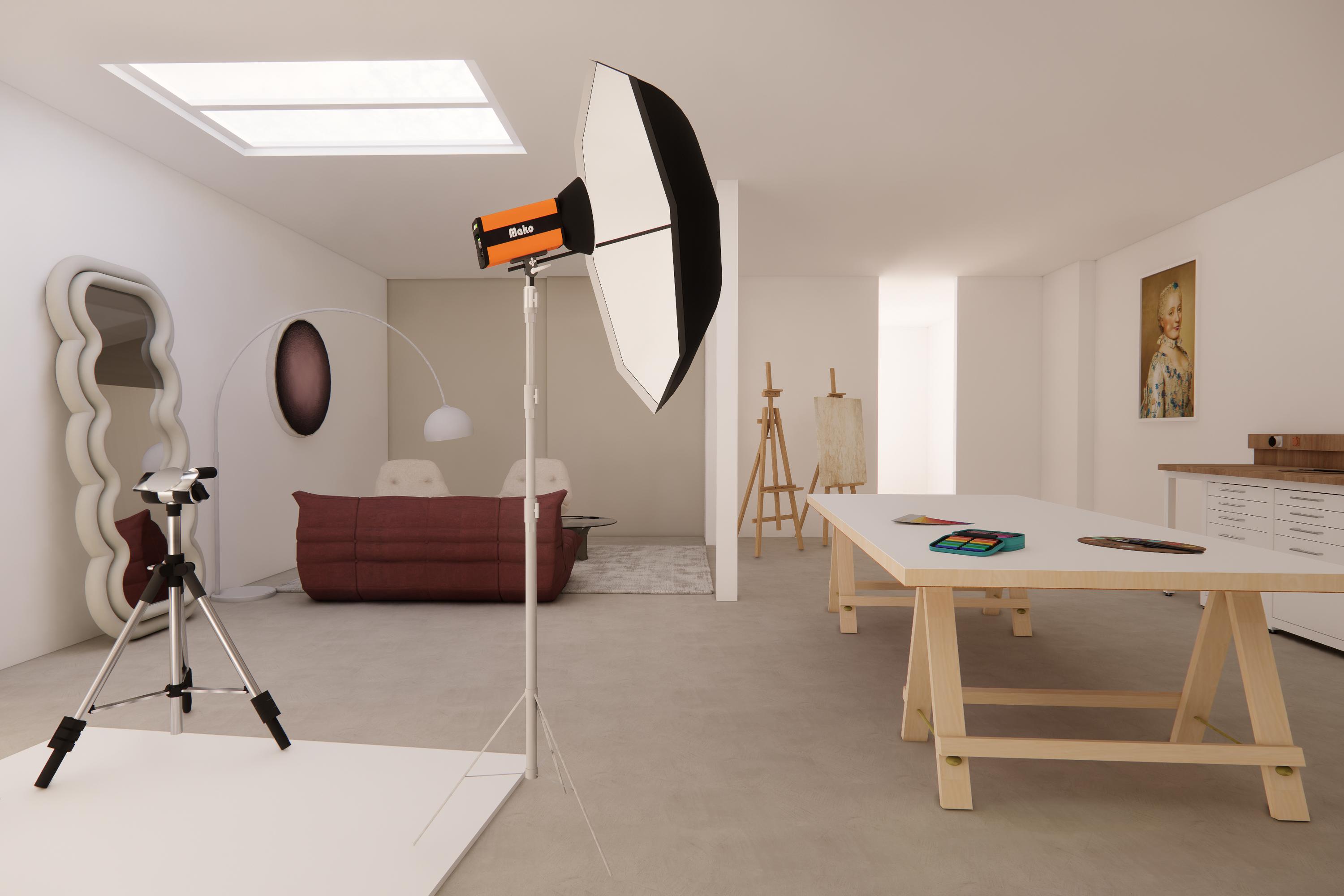 Tweede entree, (woon)kamer en een grote studio op de begane grond.