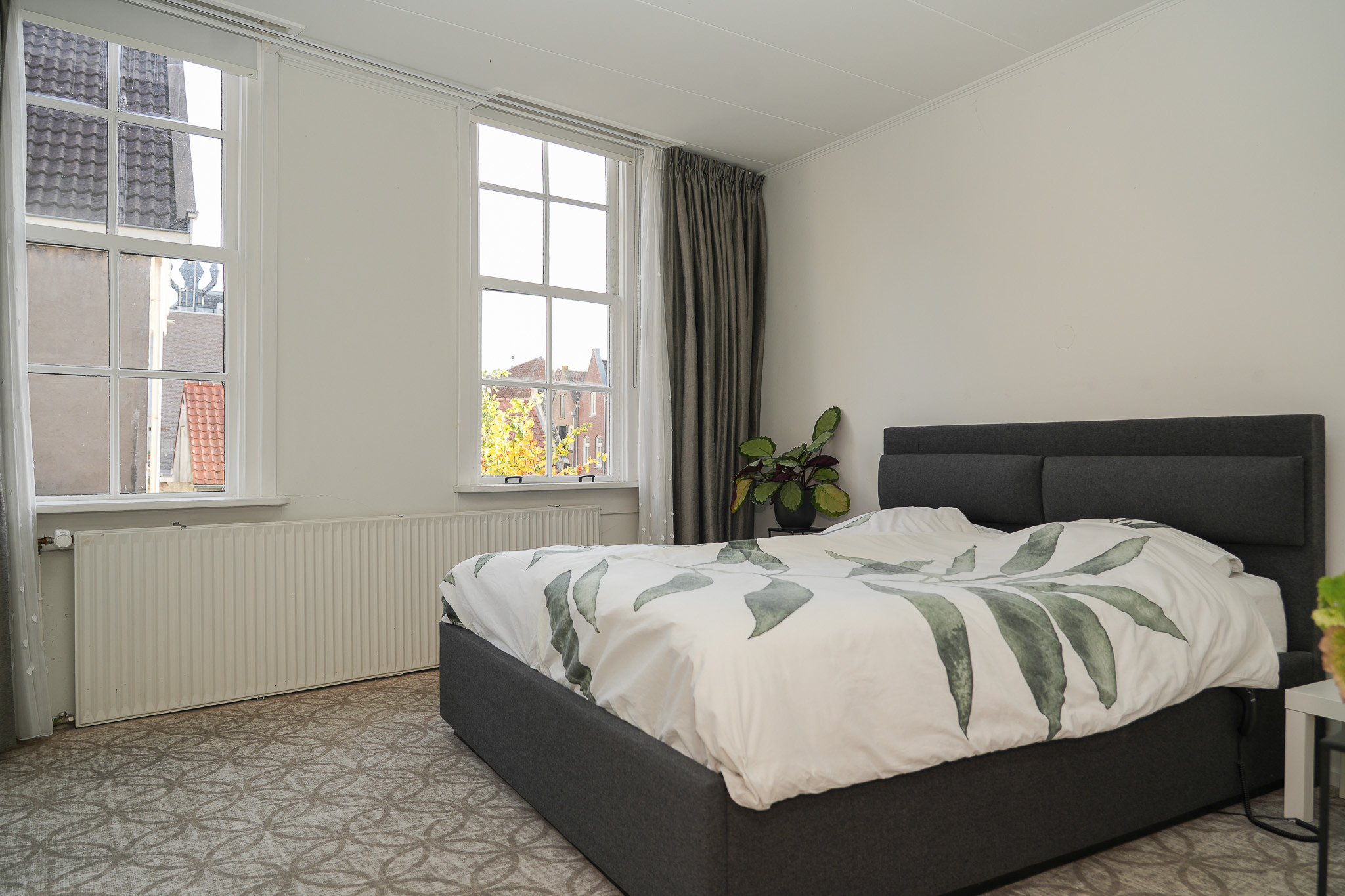 Via een brede eigentijdse trappartij komen we op de overloop. Aan de achterzijde treffen we de iets hoger gelegen woonkamer. Voor de ramen op het westen is er zicht op de jachthaven en aan de oostzijde zijn dubbele deuren die toegang geven tot het dakterras. De nok van het achterhuis is bij de recente restauratie volledig in het zicht gelaten, waardoor er een vrije hoogte van ruim 6,5 meter is ontstaan. Verder is er een royale en zonnige slaapkamer en een luxe badkamer (2020) met deur naar het dakterras. Deze badkamer is ingericht met een vrijstaand bad, inloopdouche, wastafelmeubel en toilet. Via de overloop zijn de vertrekken die aan Tolstraat 21 zijn toebedeeld te bereiken.