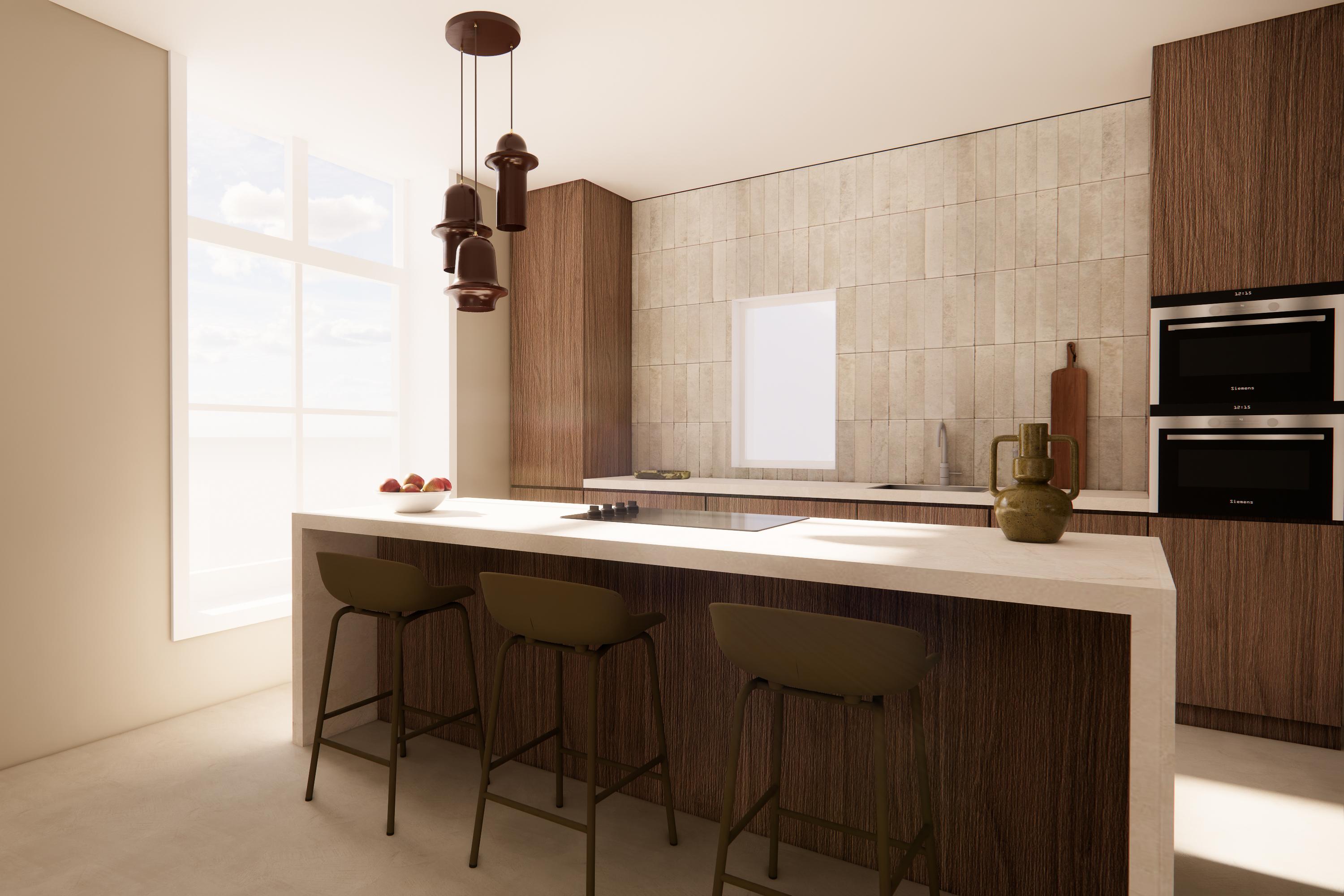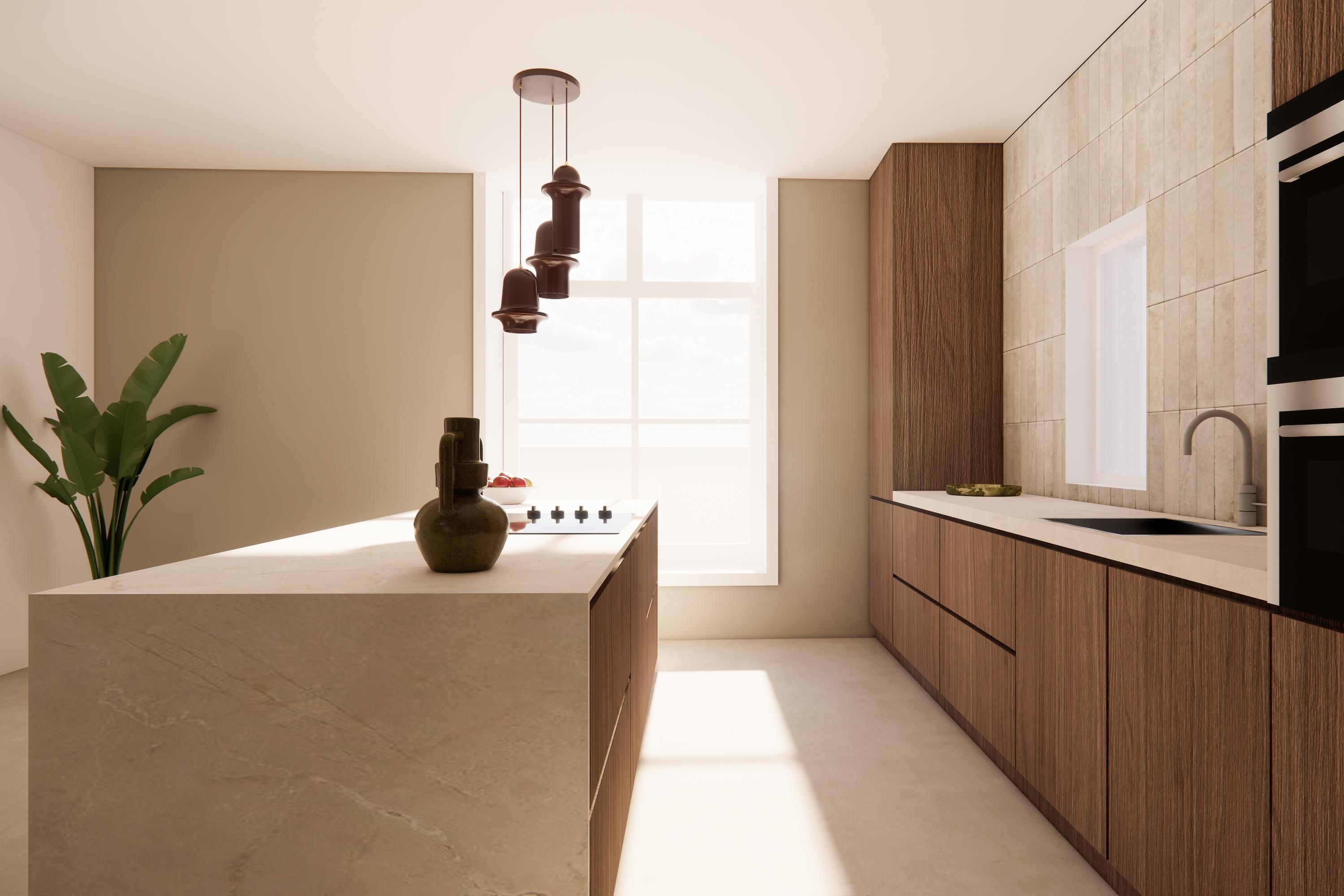 Slaapkamer, badkamer, separate toiletruimte en keuken aan het dakterras op de eerste verdieping.