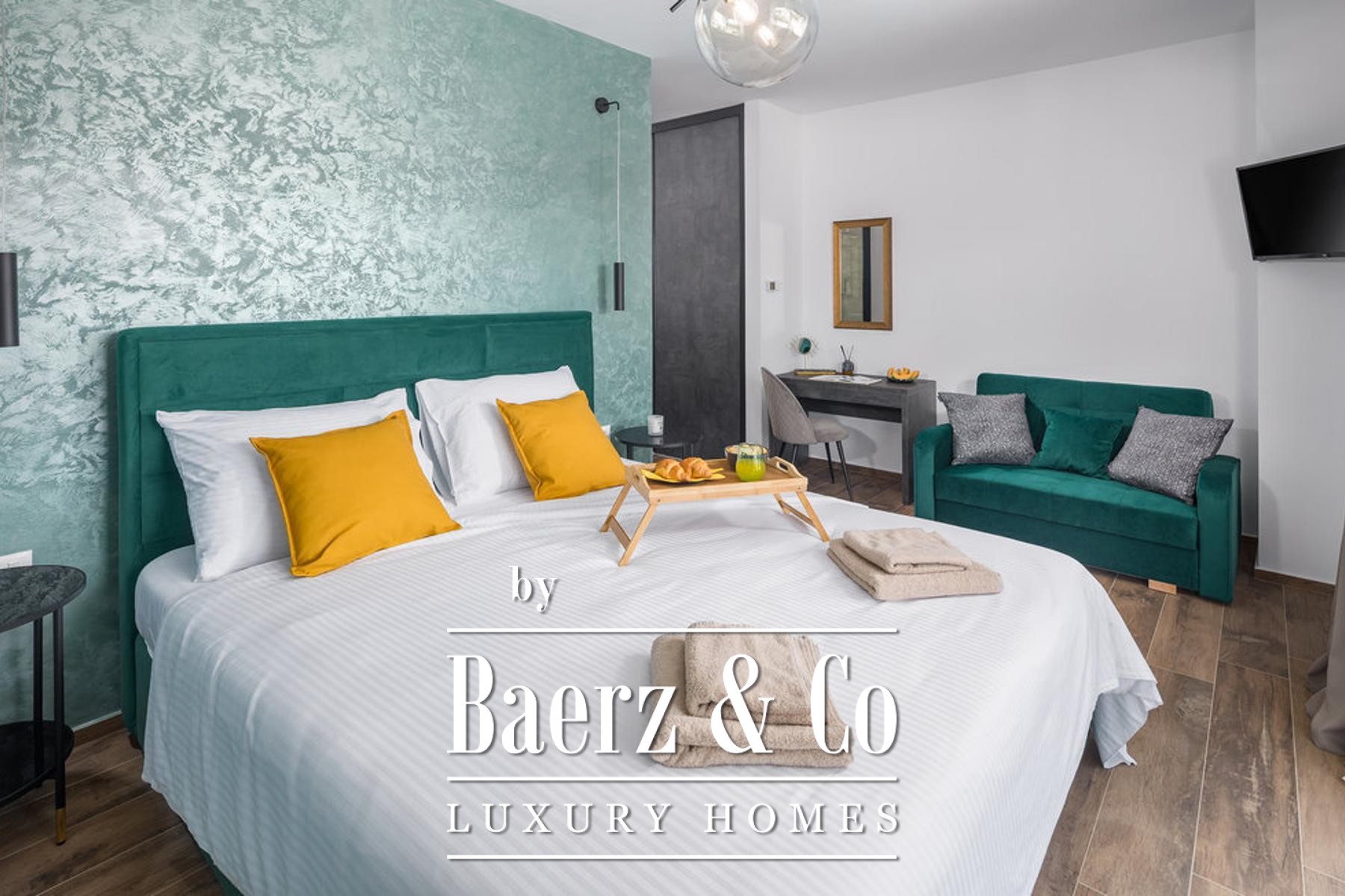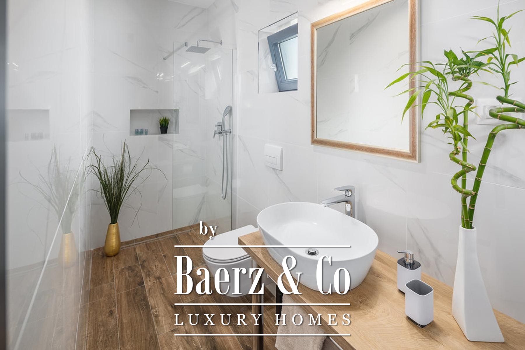 bathroom, and each room has direct access to its own terrace with a beautiful view of nature.On the plot there is a sunbathing area, a heated pool with a heat pump with a total size of 38.50 m2, and a covered area with a barbecue and a place to dine with your loved ones.The best materials and equipment were used for this property, high quality construction, aluminum joinery, underfloor heating system through a heat pump. All rooms are air-conditioned. First-class parquet and ceramics, all furniture is designer and of well-known brands.A first-class property that deserves attention.For more information or to arrange a viewing, please feel free to contact us.