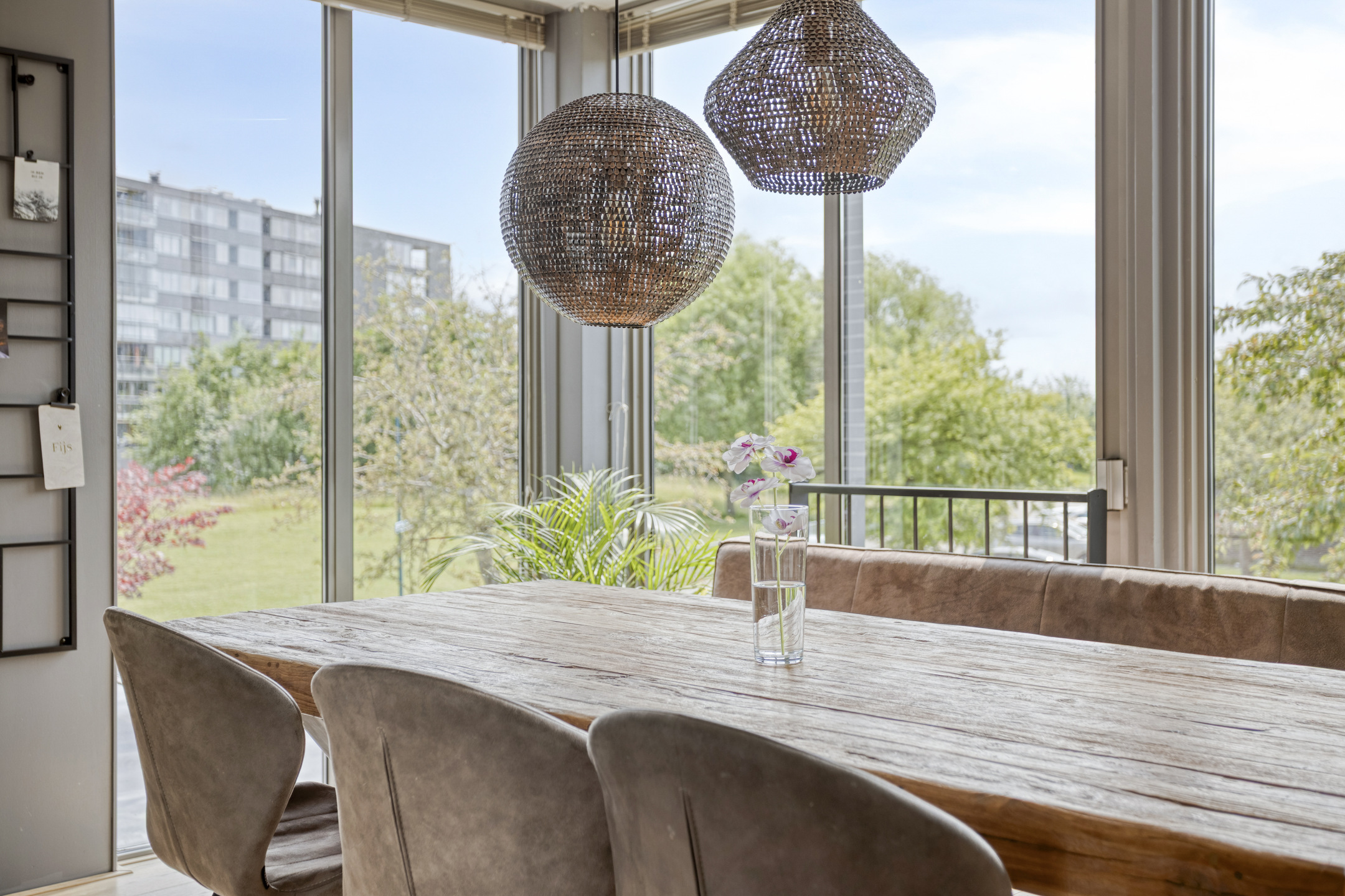 De woonruimtes zijn royaal opgezet en licht door de grote raampartijen. Elke woning heeft een eigen woonkamer met uitzicht op het groen rondom het huis. De keukens zijn praktisch ingericht en sluiten goed aan op de leefruimtes. In totaal zijn er drie moderne badkamers aanwezig, en door de verdeling over vier woonlagen is er altijd een rustige plek te vinden. De slaapkamers zijn verdeeld over alle verdiepingen, met ruimte voor grote bedden, bureaus en kasten. De huidige bewoners hebben de woning keurig onderhouden; de afwerking is strak en eigentijds. Dankzij HR++ beglazing, aluminium kozijnen, dak-, muur- en vloerisolatie, en 12 zonnepanelen is dit huis ook nog eens energiezuinig (energielabel A).