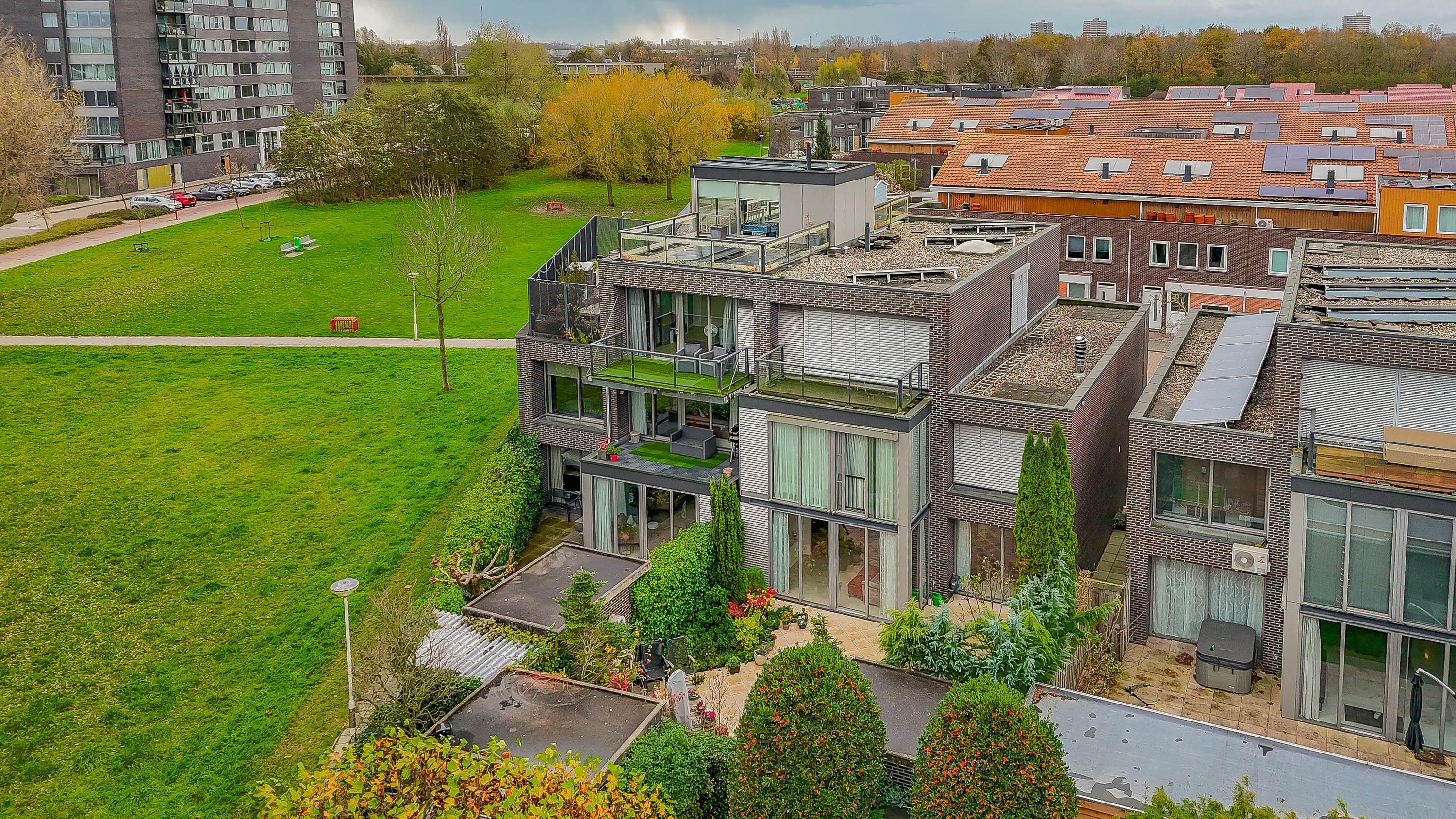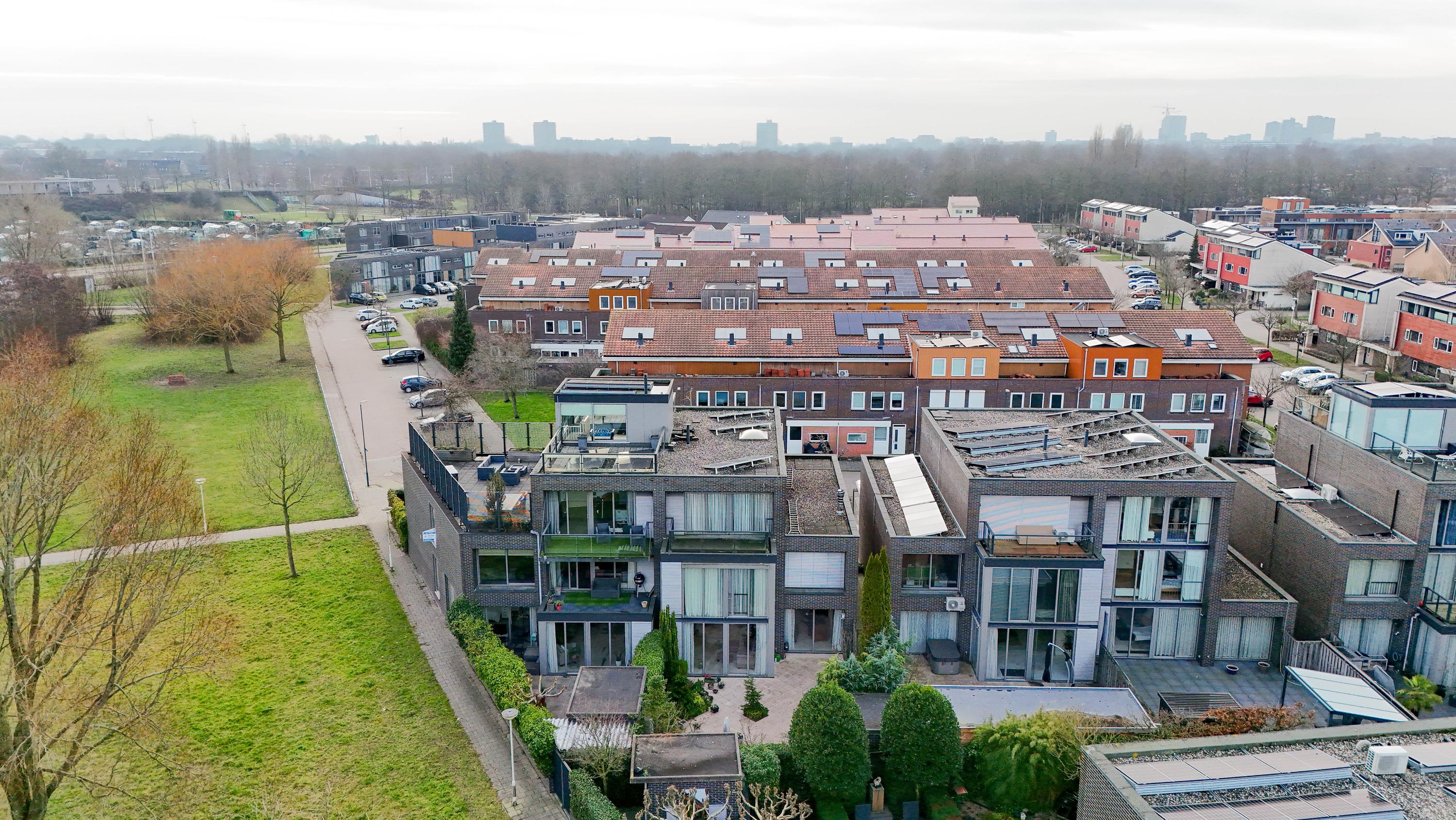 De buitenruimte is al net zo indrukwekkend: in totaal 168 m2 aan buitenruimte verdeeld over een ruime voortuin, achtertuin, 3 balkons en 3 dakterrassen. Hierdoor heb je altijd een plek in de zon én privacy. Op eigen terrein is ruimte om te parkeren onder de carport en er is zelfs een eigen laadpaal aanwezig. De ligging in een groene, rustige wijk van Zoetermeer maakt het woongenot compleet. Vanuit de woonkamer kijk je vrij uit over een groenstrook en volwassen bomen – een zeldzame combinatie van ruimte, privacy en natuur binnen handbereik.