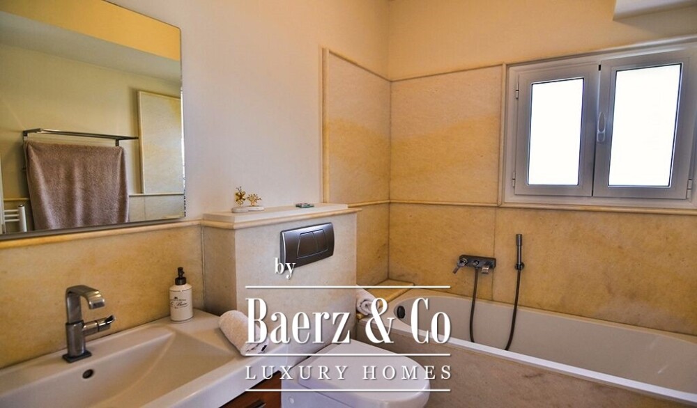 Средиземноморская архитектура виллы и превосходное качество строительства видны в каждой детали, дополнены двойным остеклением, входной дверью с повышенной безопасностью, автономным отоплением, системой на жидком топливе и кондиционированием через радиаторы. Открытая и крытая парковка рассчитана до семи автомобилей. Внешнее пространство организовано вокруг полукруглого бескрайного бассейна площадью 68 м² с баром и зоной отдыха под перголой. От виллы пляжи региона находятся в 2 000 метрах, профессиональное поле для гольфа — в 13 км, а также имеется прямой доступ к островам Спецес и Идра. Эта собственность воплощает в себе вечную роскошь и природный ритм средиземноморской жизни.