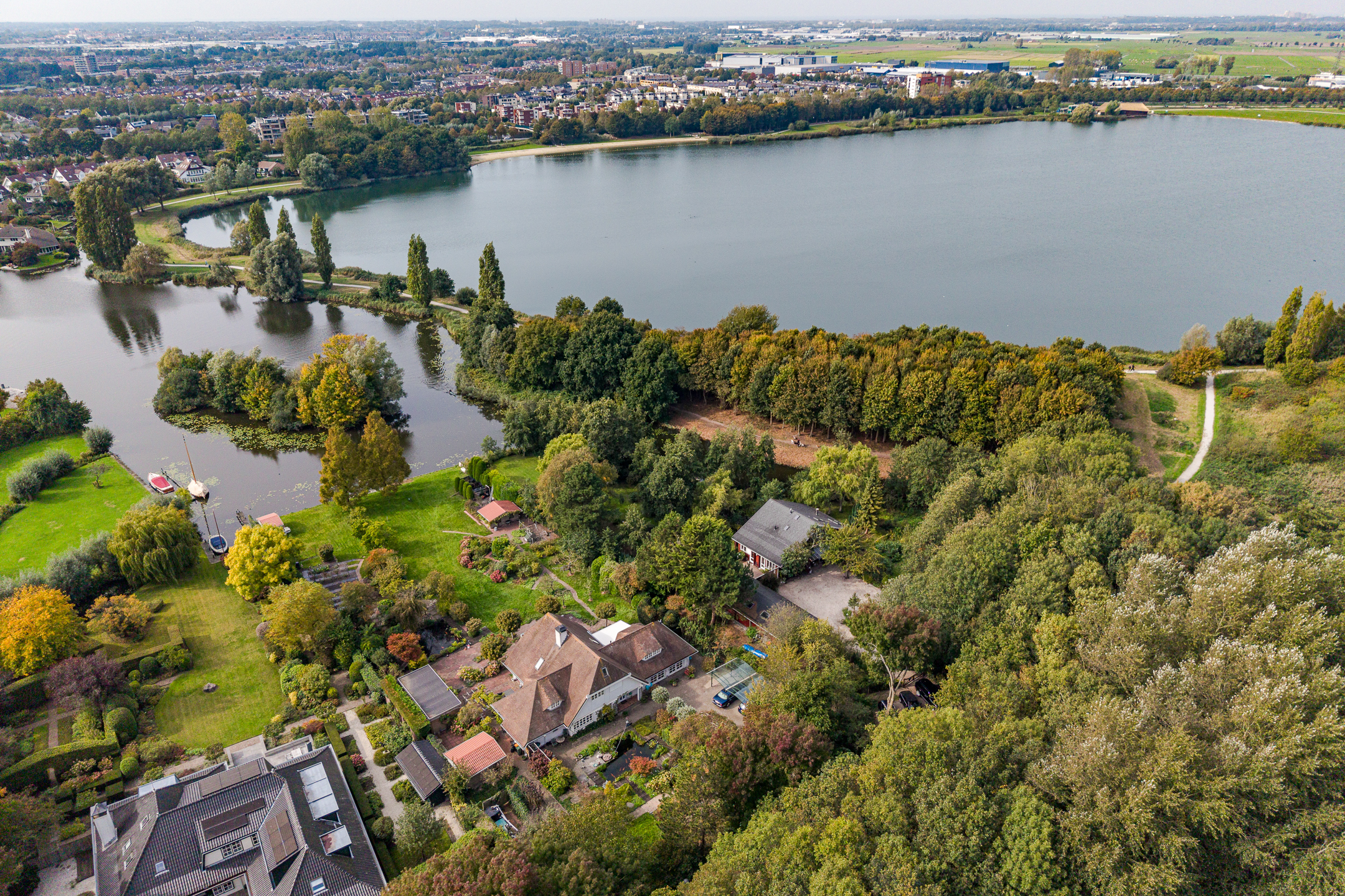 Внутри резиденция включает пять спален, две ванные комнаты, а также оснащена механической вентиляцией, сигнализацией, кабельным телевидением, мансардными окнами и прочной изоляцией. Практичные решения по отоплению включают воздушное отопление, благодаря чему объект имеет энергетический класс C. Хозяйственные постройки спрятаны в тени взрослых деревьев, усиливая атмосферу сдержанной роскоши и приватности, которые предлагает эта вилла на продажу в Warmond. Лишь ограниченное число соседних вилл обрамляет озеро, а доступ к основным водным путям, таким как река Кааг и каналы к центру Лейдена, остается уделом ценителей старинного голландского образа жизни на воде.