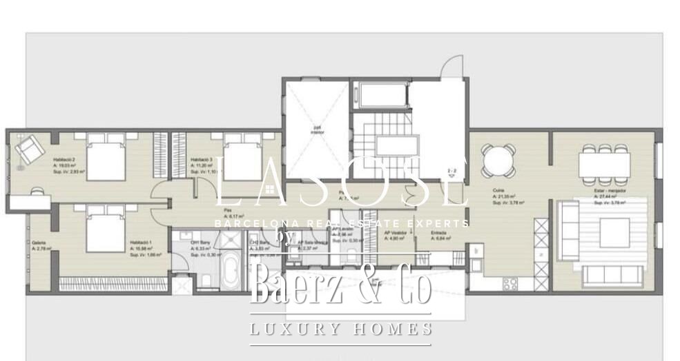 Apartment Barcelona 公寓呈现西班牙文化之都核心区的都市生活臻选体验。此 147 平方米的住宅空间布局合理,设有三间卧室,包括一间静谧的主套房,配备独立浴室及步入式衣帽间,巧妙融合舒适与低调雅致。额外的浴室与客用卫生间为住户与宾客提供日常便利,现代简洁的设计线条勾勒出一处专为高品质生活而设的空间。
