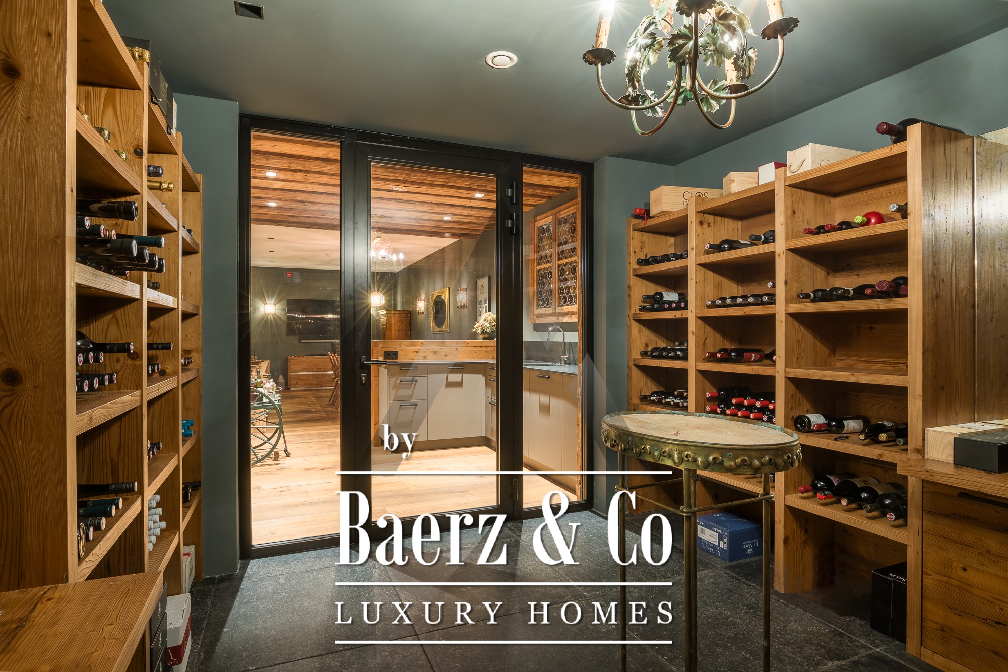The upper floor boasts a spacious living and dining area with library, high-end kitchen with dining area, free-standing stone fireplace, high ceilings and oversized windows with fantastic views.