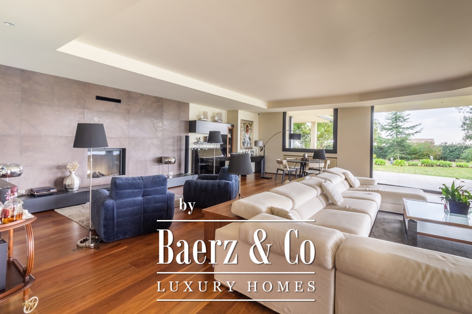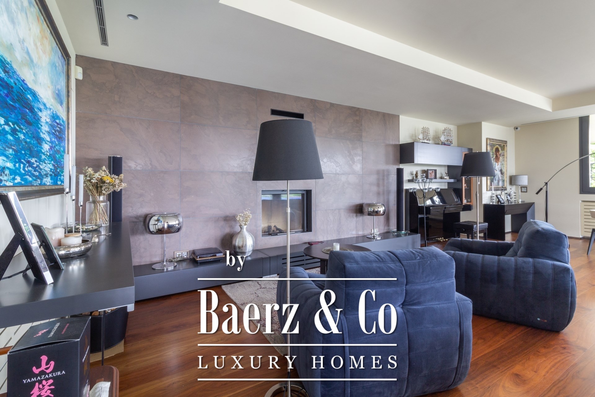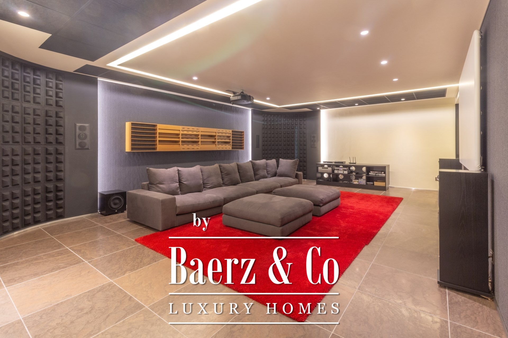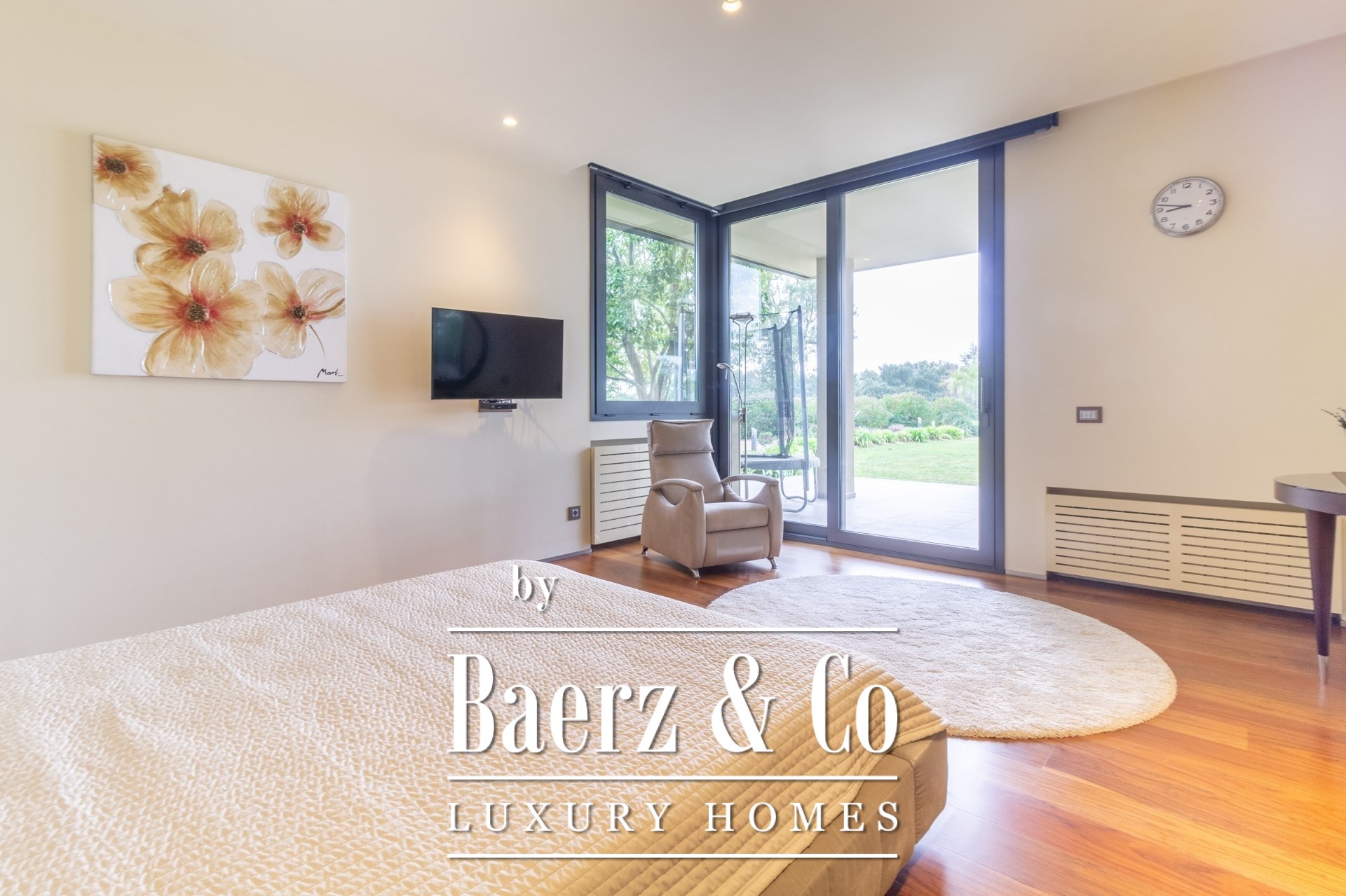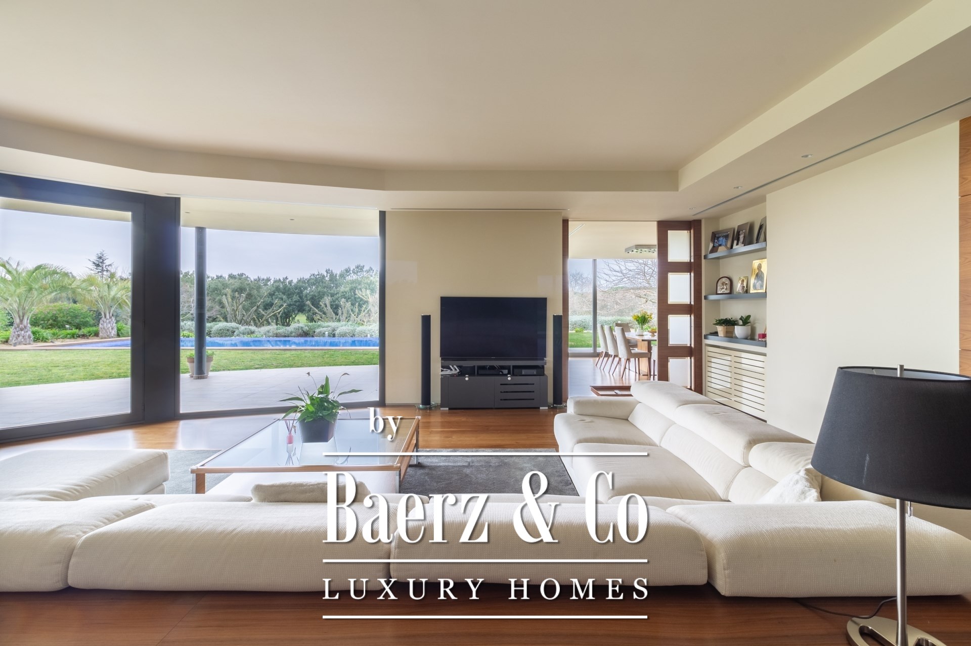 宽敞的玄关引入主层,宽阔的客餐厅沐浴在天然采光中,花园与泳池的开阔视野尽收眼底。带壁炉的阅读角为静谧思考营造氛围。厨房配备高端电器与卓越工艺,专为烹饪精致美食而设计。底层设有两间套房卧室,兼顾私密与便捷,并配有客用卫浴和独立办公室。